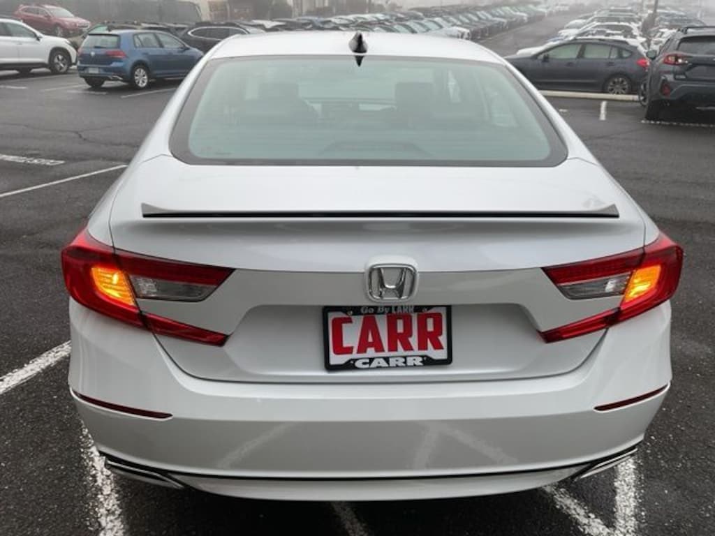 This 2022 White Honda Accord Sport Special Edition FWD is well equipped and includes these features and benefits: Carr Care Advantage Certified, Black Leather, 4-Wheel Disc Brakes, 8 Speakers, ABS brakes, Adaptive Cruise Control: Adaptive Cruise Control (ACC) with Low-Speed Follow, Air Conditioning, Alloy wheels, AM/FM radio, Apple CarPlay/Android Auto, Auto High-beam Headlights, Automatic temperature control, Brake assist, Bumpers: body-color, Delay-off headlights, Driver door bin, Driver vanity mirror, Dual front impact airbags, Dual front side impact airbags, Electronic Stability Control, Emergency communication system: HondaLink, Exterior Parking Camera Rear, Forward collision: Collision Mitigation Braking System (CMBS) + FCW mitigation, Four wheel independent suspension, Front anti-roll bar, Front Bucket Seats, Front Center Armrest, Front dual zone A/C, Front fog lights, Front reading lights, Fully automatic headlights, Heated door mirrors, Heated Front Bucket Seats, Heated front seats, Illuminated entry, Knee airbag, Lane Departure Warning System, Leather Shift Knob, Leather steering wheel, Low tire pressure warning, Occupant sensing airbag, Outside temperature display, Overhead airbag, Overhead console, Panic alarm, Passenger door bin, Passenger vanity mirror, Perforated Leather Seat Trim, Power door mirrors, Power driver seat, Power passenger seat, Power steering, Power windows, Radio data system, Radio: 180-Watt AM/FM Audio System, Rear anti-roll bar, Rear seat center armrest, Rear window defroster, Remote keyless entry, Security system, Speed control, Speed-sensing steering, Speed-Sensitive Wipers, Split folding rear seat, Spoiler, Steering wheel mounted audio controls, Tachometer, Telescoping steering wheel, Tilt steering wheel, Traction control, Trip computer, Variably intermittent wipers, and Wheels: 19" Machine-Finished Alloy w/Black Inserts. Black Leather.