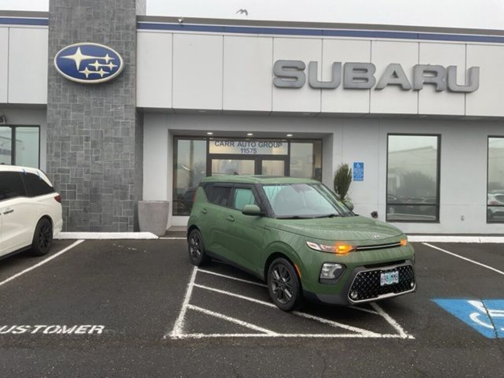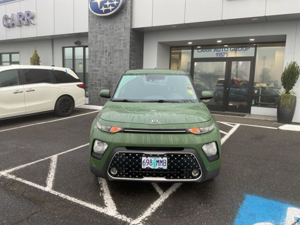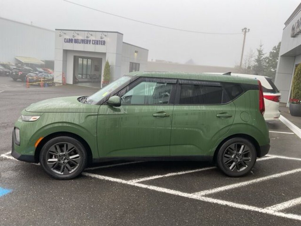 This 2021 Undercover Green Kia Soul EX FWD is well equipped and includes these features and benefits: Carr Care Advantage Certified, 4-Wheel Disc Brakes, 6 Speakers, ABS brakes, Air Conditioning, Alloy wheels, AM/FM radio: SiriusXM, Apple CarPlay & Android Auto, Automatic temperature control, Brake assist, Bumpers: body-color, Cargo Tray, Carpeted Floor Mats, Delay-off headlights, Driver door bin, Driver vanity mirror, Dual front impact airbags, Dual front side impact airbags, Electronic Stability Control, Emergency communication system: UVO link, Exterior Parking Camera Rear, Front anti-roll bar, Front Bucket Seats, Front Center Armrest, Front dual zone A/C, Front fog lights, Front reading lights, Front wheel independent suspension, Fully automatic headlights, Heated door mirrors, Heated Front Bucket Seats, Heated front seats, Leather Shift Knob, Leather steering wheel, Low tire pressure warning, Navigation System, Occupant sensing airbag, Outside temperature display, Overhead airbag, Overhead console, Passenger door bin, Passenger vanity mirror, Power door mirrors, Power driver seat, Power moonroof, Power steering, Power windows, Premium Cloth Seat Trim, Radio: AM/FM/MP3 Audio System, Rear Bumper Applique, Rear seat center armrest, Rear window defroster, Rear window wiper, Remote keyless entry, Speed control, Speed-sensing steering, Split folding rear seat, Steering wheel mounted audio controls, Tachometer, Telescoping steering wheel, Tilt steering wheel, Traction control, Trip computer, Variably intermittent wipers, and Wheels: 17" x 6.5 Alloy.