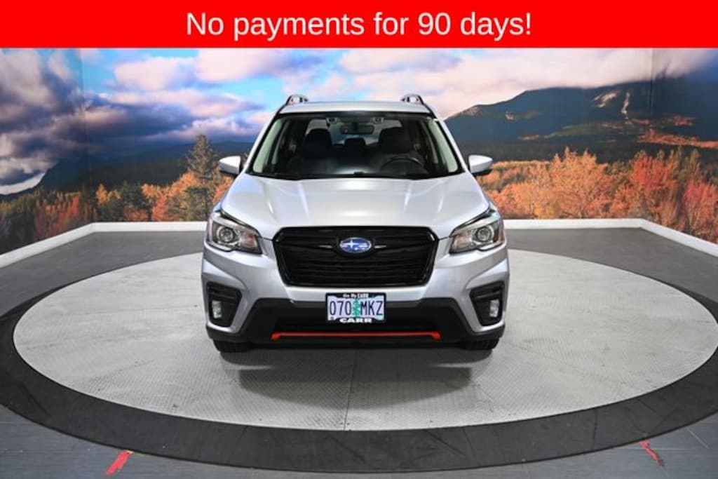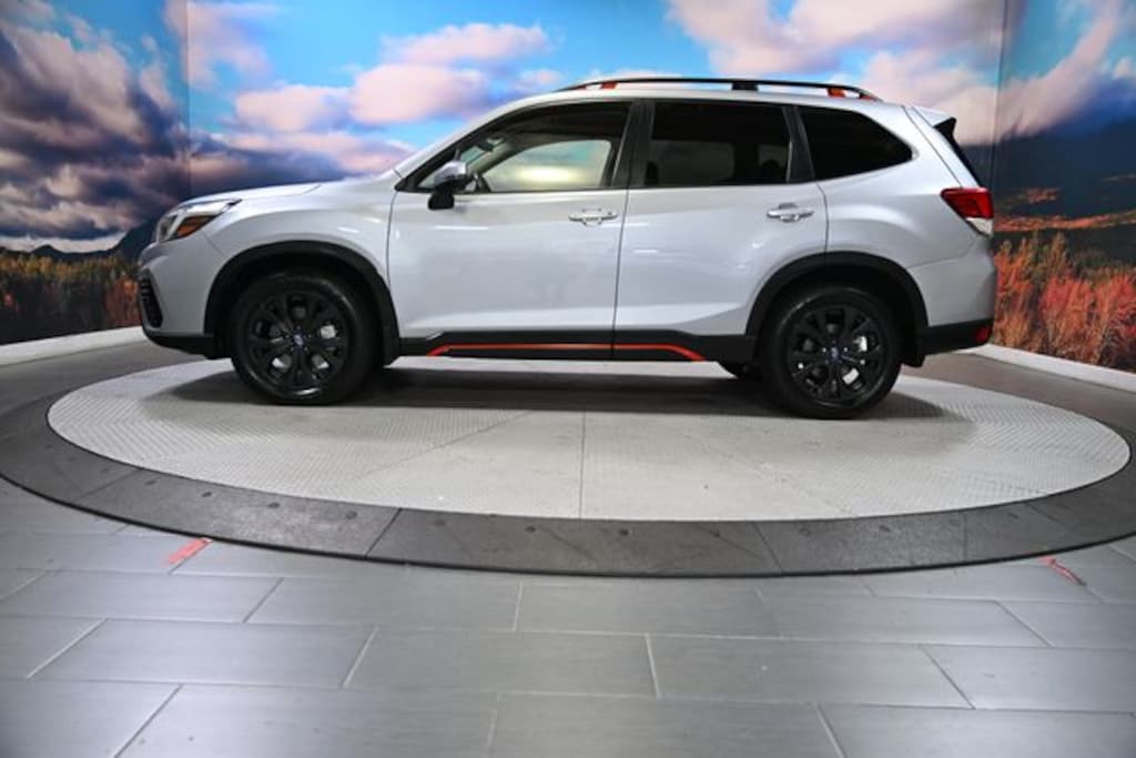This 2020 Ice Silver Metallic Subaru Forester Sport AWD is well equipped and includes these features and benefits: Audio Sys/Drvr Ast Tech/Rev Auto Brake/Pwr Rr Gate (Blind Spot Detection w/Rear Cross Traffic Alert, harman kardon 576W Amp & Speaker System, Power Rear Gate, Radio: Subaru Starlink 8.0" Multimedia Plus System, and Reverse Automatic Braking System (RAB)), Popular Package #2 (Auto-Dimming Exterior Mirror w/Approach Lighting, Auto-Dimming Mirror w/Compass & HomeLink, and Rear Bumper Cover), Carr Care Advantage Certified, 3.70 Axle Ratio, 4-Wheel Disc Brakes, 6 Speakers, ABS brakes, Active Cruise Control, Air Conditioning, Alloy wheels, AM/FM radio: SiriusXM, Auto High-beam Headlights, Automatic temperature control, Brake assist, Bumpers: body-color, CD player, Driver door bin, Driver vanity mirror, Dual front impact airbags, Dual front side impact airbags, Electronic Stability Control, Emergency communication system: STARLINK Safety and Security (Subscription Required), Exterior Parking Camera Rear, Four wheel independent suspension, Front anti-roll bar, Front Bucket Seats, Front Center Armrest, Front fog lights, Front reading lights, Fully automatic headlights, Heated door mirrors, Heated Front Bucket Seats, Heated front seats, Illuminated entry, Knee airbag, Leather Shift Knob, Low tire pressure warning, Occupant sensing airbag, Outside temperature display, Overhead airbag, Overhead console, Paddle-Shift Control Switches, Panic alarm, Passenger door bin, Passenger vanity mirror, Power door mirrors, Power driver seat, Power moonroof: Panoramic, Power steering, Power windows, Radio data system, Rear anti-roll bar, Rear seat center armrest, Rear Seatback Protector, Rear window defroster, Rear window wiper, Remote keyless entry, Roof rack: rails only, Security system, Speed control, Speed-sensing steering, Splash Guards, Split folding rear seat, Spoiler, Sport Cloth Upholstery, STARLINK/Apple CarPlay/Android Auto, Steering wheel mounted audio controls, Tachometer, Telescoping steering wheel, Tilt steering wheel, Traction control, Trip computer, Turn signal indicator mirrors, Variably intermittent wipers, and Wheels: 18" x 7.0J Black Finish Aluminum Alloy. No CARR payments for 4 months, Sign and Drive sales event!, CARR Cares Advantage up to $3100 in ownership savings.