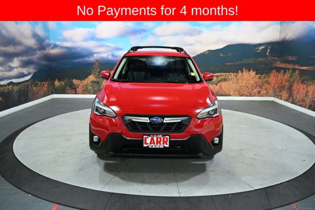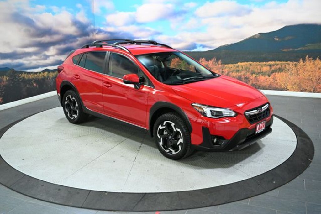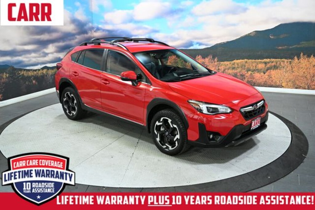 This 2021 Pure Red Subaru Crosstrek Limited AWD is well equipped and includes these features and benefits: Popular Package #5 (All-Weather Floor Liners, Auto-Dimming Exterior Mirror w/Approach Light, Auto-Dimming Mirror w/Compass & HomeLink, Rear Bumper Cover, Rear Seatback Protector, and Splash Guards), Standard Model, Carr Care Advantage Certified, 3.70 Axle Ratio, 4-Wheel Disc Brakes, 6 Speakers, ABS brakes, Aero Crossbar Set, Air Conditioning, Alloy wheels, AM/FM radio: SiriusXM, Anti-whiplash front head restraints, Auto High-beam Headlights, Automatic temperature control, Brake assist, Bumpers: body-color, CD player, Driver door bin, Driver vanity mirror, Dual front impact airbags, Dual front side impact airbags, Electronic Stability Control, Emergency communication system: STARLINK Safety and Security (Subscription Required), Exterior Parking Camera Rear, Four wheel independent suspension, Front anti-roll bar, Front Bucket Seats, Front Center Armrest, Front fog lights, Front reading lights, Fully automatic headlights, Heated door mirrors, Heated Front Bucket Seats, Heated front seats, Illuminated entry, Knee airbag, Leather-Trimmed Upholstery, Low tire pressure warning, Occupant sensing airbag, Outside temperature display, Overhead airbag, Overhead console, Panic alarm, Passenger door bin, Passenger vanity mirror, Power door mirrors, Power driver seat, Power steering, Power windows, Radio data system, Radio: Subaru STARLINK 8.0" Multimedia Plus System, Rear anti-roll bar, Rear seat center armrest, Rear window defroster, Rear window wiper, Remote keyless entry, Security system, Speed control, Speed-sensing steering, Split folding rear seat, Spoiler, STARLINK/Apple CarPlay/Android Auto, Steering wheel mounted audio controls, Subaru STARLINK Smartphone Integration, Tachometer, Telescoping steering wheel, Tilt steering wheel, Traction control, Trip computer, Turn signal indicator mirrors, Variably intermittent wipers, and Wheels: 18" Alloy Machine Finish.