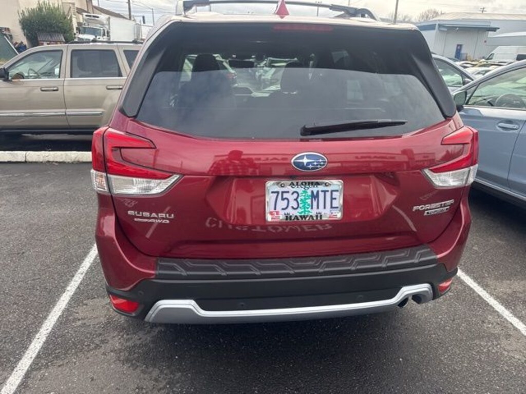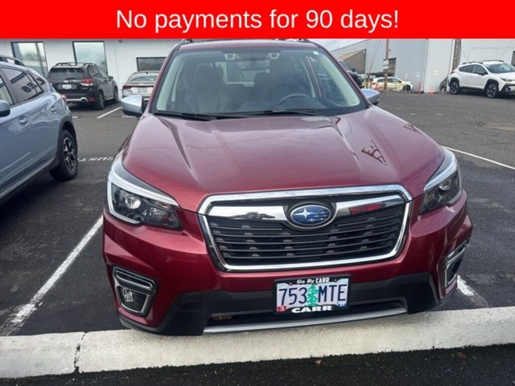 This 2021 Crimson Red Pearl Subaru Forester Touring AWD is well equipped and includes these features and benefits: Carr Care Advantage Certified, harman kardon 576W Amp & Speaker System, Power moonroof: Panoramic, 3.70 Axle Ratio, 4-Wheel Disc Brakes, 9 Speakers, ABS brakes, Air Conditioning, Alloy wheels, AM/FM radio: SiriusXM, Auto High-beam Headlights, Automatic temperature control, Brake assist, Bumpers: body-color, CD player, Driver door bin, Driver vanity mirror, Dual front impact airbags, Dual front side impact airbags, Electronic Stability Control, Emergency communication system: STARLINK Safety and Security (Subscription Required), Exterior Parking Camera Rear, Four wheel independent suspension, Front anti-roll bar, Front Bucket Seats, Front Center Armrest, Front dual zone A/C, Front fog lights, Front reading lights, Fully automatic headlights, harman/kardon® Speakers, Heated door mirrors, Heated Front Bucket Seats, Heated front seats, Heated rear seats, Heated steering wheel, HVAC memory, Illuminated entry, Knee airbag, Leather Shift Knob, Low tire pressure warning, Memory seat, Navigation System, Occupant sensing airbag, Outside temperature display, Overhead airbag, Overhead console, Paddle-Shift Control Switches, Panic alarm, Passenger door bin, Passenger vanity mirror, Perforated Leather-Trimmed Upholstery, Power door mirrors, Power driver seat, Power Liftgate, Power passenger seat, Power steering, Power windows, Premium audio system: harman/kardon, Radio data system, Radio: Subaru Starlink 8.0" Multimedia Nav System, Rear anti-roll bar, Rear seat center armrest, Rear window defroster, Rear window wiper, Remote keyless entry, Roof rack: rails only, Security system, Speed control, Speed-sensing steering, Split folding rear seat, Spoiler, STARLINK/Apple CarPlay/Android Auto, Steering wheel mounted audio controls, Tachometer, Telescoping steering wheel, Tilt steering wheel, Traction control, Trip computer, Turn signal indicator mirrors, Variably intermittent wipers, and Wheels: 18" x 7.0J Blk Machine Touring Alum Alloy. No CARR payments for 4 months, Sign and Drive sales event!, CARR Cares Advantage up to $3100 in ownership savings, Touring, harman kardon 576W Amp & Speaker System, Power moonroof: Panoramic.