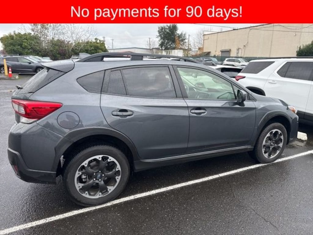 This 2023 Magnetite Gray Metallic Subaru Crosstrek Premium AWD is well equipped and includes these features and benefits: Moonroof & BSD w/RCTA & Power Driver Seat (6-Way Power Driver's Seat, Blind Spot Detection w/Rear Cross-Traffic Alert, EyeSight System, Keyless Access w/Push-Button Start, and Power Moonroof), Subaru Certified Pre-Owned Certified, 3.90 Axle Ratio, 4-Wheel Disc Brakes, 6 Speakers, ABS brakes, Air Conditioning, Alloy wheels, AM/FM radio: SiriusXM, Anti-whiplash front head restraints, Automatic temperature control, Brake assist, Bumpers: body-color, CD player, Cloth Upholstery, Driver door bin, Driver vanity mirror, Dual front impact airbags, Dual front side impact airbags, Electronic Stability Control, Emergency communication system: STARLINK Safety and Security (Subscription Required), Exterior Parking Camera Rear, Four wheel independent suspension, Front anti-roll bar, Front Bucket Seats, Front Center Armrest, Front fog lights, Front reading lights, Fully automatic headlights, Heated door mirrors, Heated Front Bucket Seats, Heated front seats, Illuminated entry, Knee airbag, Leather Shift Knob, Low tire pressure warning, Occupant sensing airbag, Outside temperature display, Overhead airbag, Overhead console, Panic alarm, Passenger door bin, Passenger vanity mirror, Power door mirrors, Power steering, Power windows, Radio data system, Radio: Subaru STARLINK 6.5" Multimedia Plus System, Rear anti-roll bar, Rear window defroster, Rear window wiper, Remote keyless entry, Security system, Speed control, Speed-sensing steering, Split folding rear seat, Spoiler, STARLINK/Apple CarPlay/Android Auto, Steering wheel mounted audio controls, Tachometer, Telescoping steering wheel, Tilt steering wheel, Traction control, Trip computer, Variably intermittent wipers, and Wheels: 17" x 7.0J Alum Alloy Blk w/Machine Finish. Subaru Certified Pre-Owned, 7 year or 100,000-mile Subaru Certified warranty, No CARR payments for 4 months, Sign and Drive sales event!, CARR Cares Advantage up to $3100 in ownership savings, Power moonroof, 6-Way Power Driver's Seat, Blind Spot Detection w/Rear Cross-Traffic Alert, EyeSight System, Keyless Access w/Push-Button Start, Moonroof & BSD w/RCTA & Power Driver Seat, Power Moonroof.