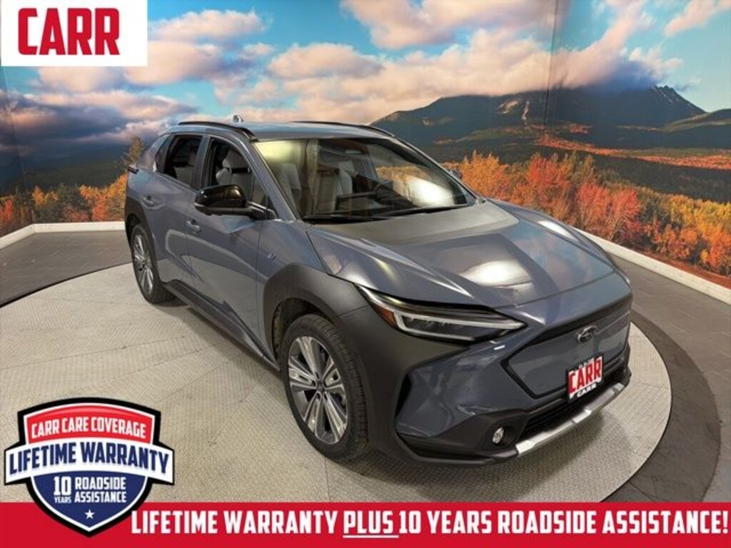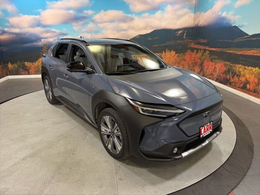 This 2023 Harbor Mist Gray Pearl Subaru Solterra Limited AWD is well equipped and includes these features and benefits: Standard Model, Carr Care Advantage Certified, 11 Speakers, 13.8 Axle Ratio, 4-Wheel Disc Brakes, ABS brakes, Accessory Activity Mount, Air Conditioning, All-Weather Floor Liners, Alloy wheels, AM/FM radio: SiriusXM, Auto High-beam Headlights, Auto-dimming Rear-View mirror, Automatic temperature control, Brake assist, Bumpers: body-color, Cargo Cover, Driver door bin, Driver vanity mirror, Dual front impact airbags, Dual front side impact airbags, Electronic Stability Control, Emergency communication system: Subaru Solterra Connect - Safety Connect (1 year trial included), Four wheel independent suspension, Front anti-roll bar, Front Bucket Seats, Front Center Armrest, Front dual zone A/C, Front fog lights, Front reading lights, Fully automatic headlights, Garage door transmitter: HomeLink, harman/kardon® Speakers, Heated door mirrors, Heated Front Bucket Seats, Heated front seats, Heated rear seats, Heated steering wheel, Illuminated entry, Knee airbag, Leather steering wheel, Low tire pressure warning, Memory seat, Navigation system: Cloud Navigation System (Subscription required), Occupant sensing airbag, Outside temperature display, Overhead airbag, Overhead console, Panic alarm, Passenger door bin, Passenger vanity mirror, Power door mirrors, Power driver seat, Power Liftgate, Power steering, Power windows, Radio data system, Radio: Subaru Solterra Connect 12.3" Multimedia System, Rain sensing wipers, Rear anti-roll bar, Rear reading lights, Rear seat center armrest, Rear window defroster, Remote keyless entry, Security system, Speed control, Speed-sensing steering, Split folding rear seat, Spoiler, StarTex Upholstery, Steering wheel mounted audio controls, Telescoping steering wheel, Tilt steering wheel, Traction control, Trip computer, Turn signal indicator mirrors, Variably intermittent wipers, and Wheels: 20" x 7.5" J Aluminum-Alloy Gray Finish. Lifetime powertrain warranty, No CARR payments for 4 months, Sign and Drive sales event!, CARR Cares Advantage up to $3100 in ownership savings, Ask us about our lifetime powertrain warranty!, One owner.