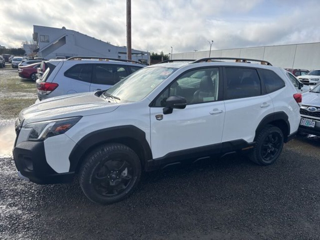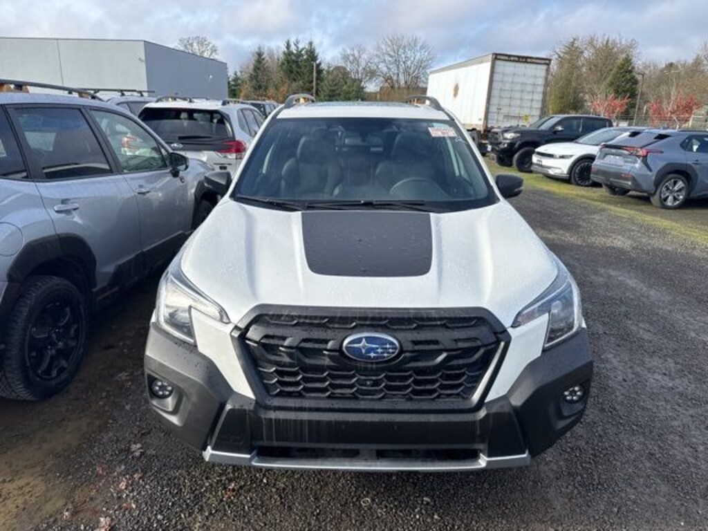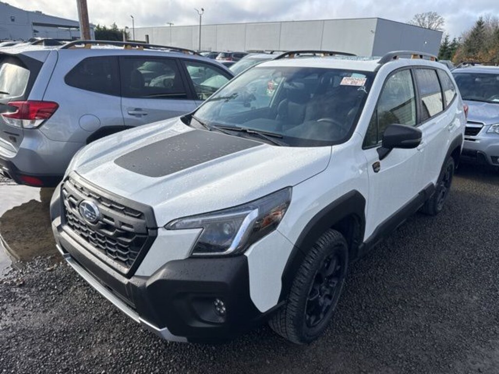 This 2024 Crystal White Pearl Subaru Forester Wilderness AWD is well equipped and includes these features and benefits: 8" Audio w/harman/kardon & Power Rear Gate (harman/kardon 9-Speaker Audio System, Power Rear Gate, and Radio: Subaru STARLINK 8.0" Multimedia Nav System), Wilderness Package (Auto-Dimming Exterior Mirror w/Approach Light, Auto-Dimming Mirror w/Compass & HomeLink, Cargo Sidewall Protector, Rear Bumper Cover, and Rear Seatback Protector - Wilderness), Subaru Certified Pre-Owned Certified, Power moonroof: Panoramic, 4-Wheel Disc Brakes, 4.11 Axle Ratio, 6 Speakers, ABS brakes, Air Conditioning, Alloy wheels, AM/FM radio: SiriusXM, Anti-whiplash front head restraints, Auto High-beam Headlights, Automatic temperature control, Brake assist, Bumpers: body-color, Driver door bin, Driver vanity mirror, Dual front impact airbags, Dual front side impact airbags, Electronic Stability Control, Emergency communication system: STARLINK Safety and Security (Subscription Required), Exterior Parking Camera Rear, Four wheel independent suspension, Front anti-roll bar, Front Bucket Seats, Front Center Armrest, Front dual zone A/C, Front fog lights, Front reading lights, Fully automatic headlights, Heated door mirrors, Heated Front Bucket Seats, Heated front seats, Illuminated entry, Knee airbag, Leather Shift Knob, Leather steering wheel, Low tire pressure warning, Navigation System, Occupant sensing airbag, Outside temperature display, Overhead airbag, Overhead console, Panic alarm, Passenger door bin, Passenger vanity mirror, Power door mirrors, Power driver seat, Power steering, Power windows, Radio data system, Radio: Subaru STARLINK 8.0" Multimedia Plus System, Rear anti-roll bar, Rear seat center armrest, Rear window defroster, Rear window wiper, Remote keyless entry, Roof rack: rails only, Security system, Speed control, Speed-sensing steering, Split folding rear seat, Spoiler, STARLINK/Apple CarPlay/Android Auto, Steering wheel mounted audio controls, Tachometer, Telescoping steering wheel, Textured StarTex Upholstery, Tilt steering wheel, Traction control, Trip computer, Turn signal indicator mirrors, Variably intermittent wipers, and Wheels: 17" x 7.0 J Matte Black Finish Alum-Alloy. Subaru Certified Pre-Owned, 7 year or 100,000-mile Subaru Certified warranty, No CARR payments for 4 months, Sign and Drive sales event!, CARR Cares Advantage up to $3100 in ownership savings, 8" Audio w/harman/kardon & Power Rear Gate, Auto-Dimming Exterior Mirror w/Approach Light, Auto-Dimming Mirror w/Compass & HomeLink, Cargo Sidewall Protector, harman/kardon 9-Speaker Audio System, Power moonroof: Panoramic, Power Rear Gate, Radio: Subaru STARLINK 8.0" Multimedia Nav System, Rear Bumper Cover, Rear Seatback Protector - Wilderness, Wilderness Package.