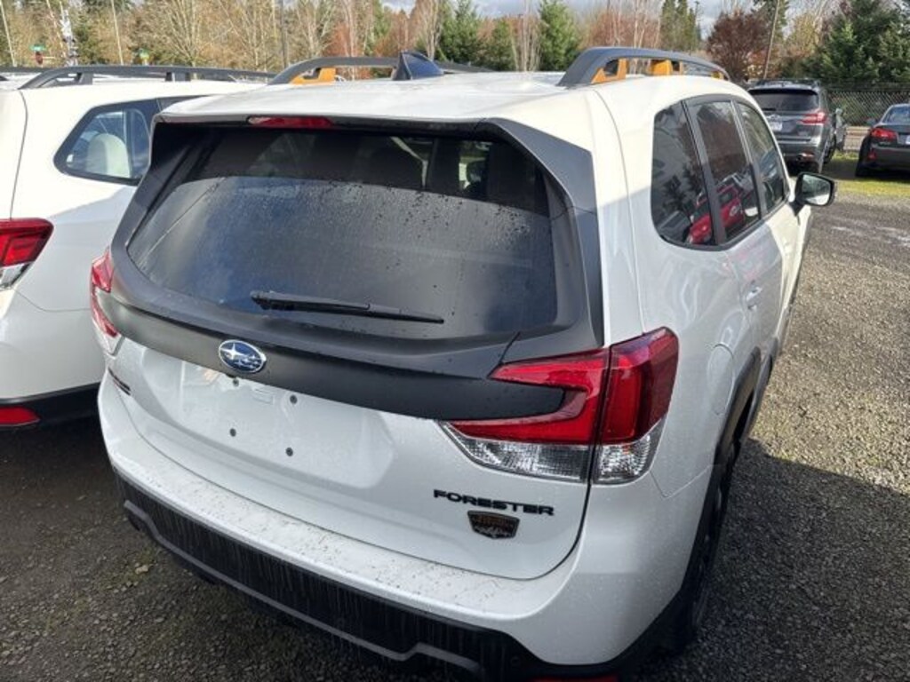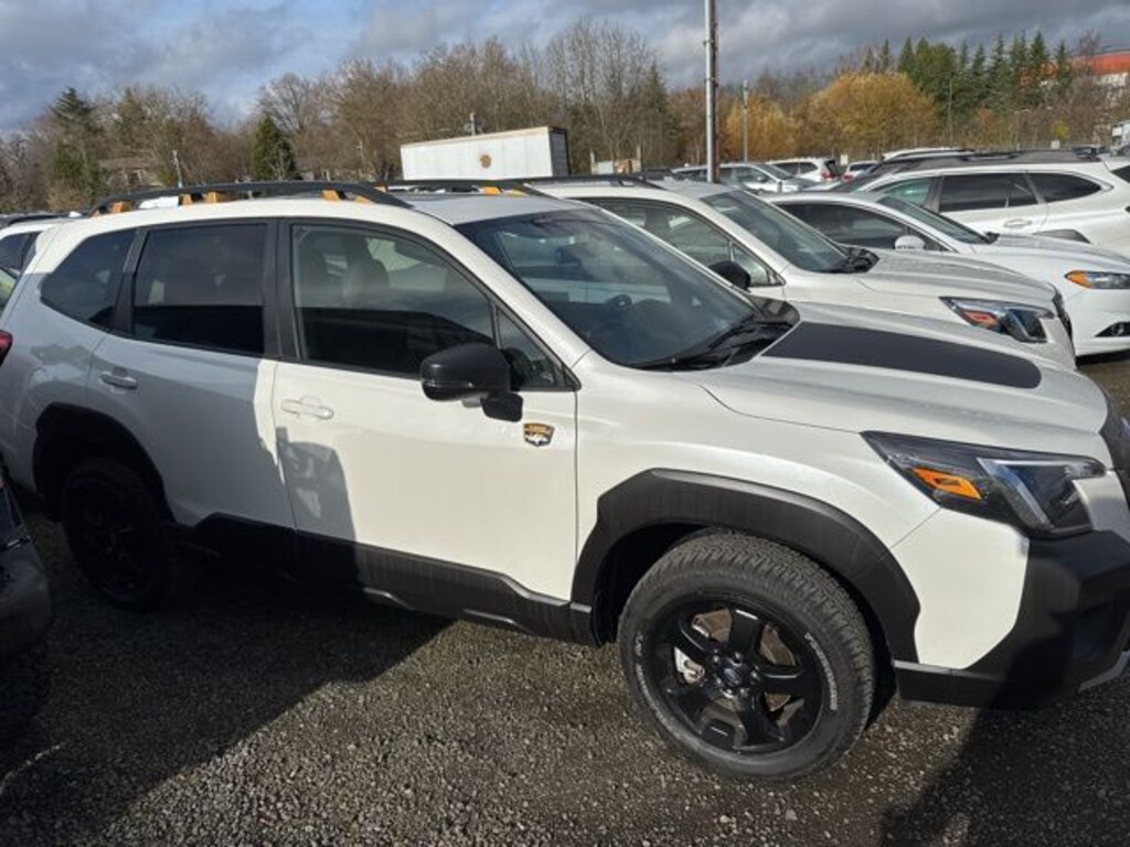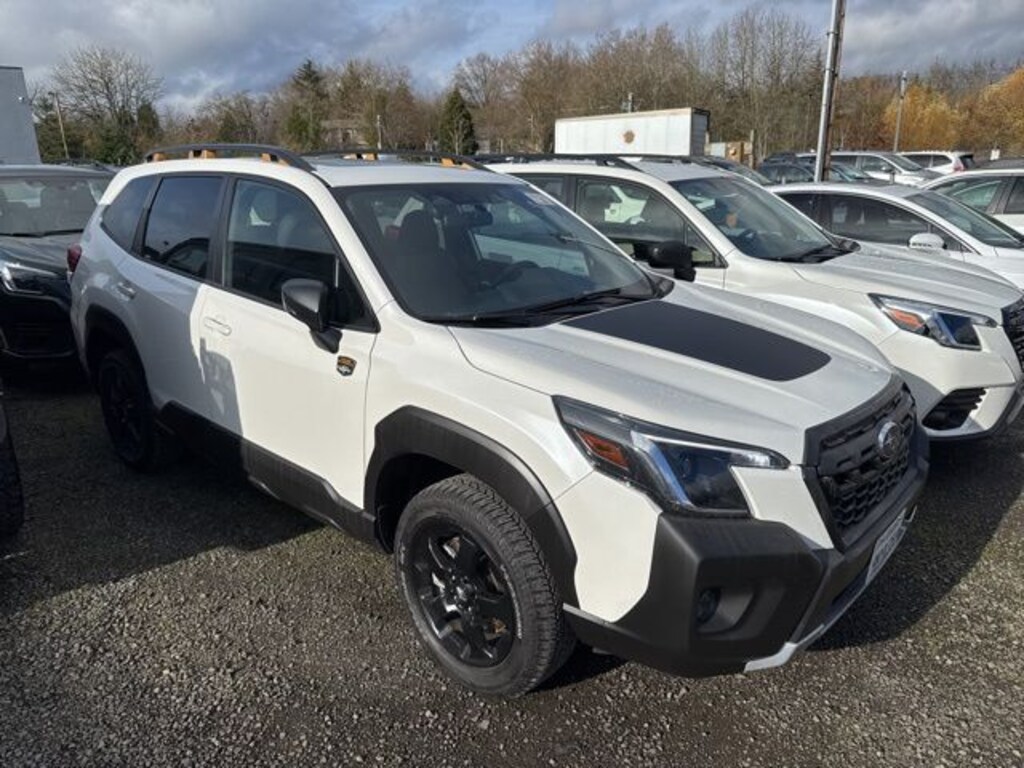 This 2024 Crystal White Pearl Subaru Forester Wilderness AWD is well equipped and includes these features and benefits: 8" Audio w/harman/kardon & Power Rear Gate (harman/kardon 9-Speaker Audio System, Power Rear Gate, and Radio: Subaru STARLINK 8.0" Multimedia Nav System), Wilderness Package (Auto-Dimming Exterior Mirror w/Approach Light, Auto-Dimming Mirror w/Compass & HomeLink, Cargo Sidewall Protector, Rear Bumper Cover, and Rear Seatback Protector - Wilderness), Subaru Certified Pre-Owned Certified, 4-Wheel Disc Brakes, 4.11 Axle Ratio, 6 Speakers, ABS brakes, Air Conditioning, Alloy wheels, AM/FM radio: SiriusXM, Anti-whiplash front head restraints, Auto High-beam Headlights, Automatic temperature control, Brake assist, Bumpers: body-color, Driver door bin, Driver vanity mirror, Dual front impact airbags, Dual front side impact airbags, Electronic Stability Control, Emergency communication system: STARLINK Safety and Security (Subscription Required), Exterior Parking Camera Rear, Four wheel independent suspension, Front anti-roll bar, Front Bucket Seats, Front Center Armrest, Front dual zone A/C, Front fog lights, Front reading lights, Fully automatic headlights, Heated door mirrors, Heated Front Bucket Seats, Heated front seats, Illuminated entry, Knee airbag, Leather Shift Knob, Leather steering wheel, Low tire pressure warning, Navigation System, Occupant sensing airbag, Outside temperature display, Overhead airbag, Overhead console, Panic alarm, Passenger door bin, Passenger vanity mirror, Power door mirrors, Power driver seat, Power moonroof: Panoramic, Power steering, Power windows, Radio data system, Radio: Subaru STARLINK 8.0" Multimedia Plus System, Rear anti-roll bar, Rear seat center armrest, Rear window defroster, Rear window wiper, Remote keyless entry, Roof rack: rails only, Security system, Speed control, Speed-sensing steering, Split folding rear seat, Spoiler, STARLINK/Apple CarPlay/Android Auto, Steering wheel mounted audio controls, Tachometer, Telescoping steering wheel, Textured StarTex Upholstery, Tilt steering wheel, Traction control, Trip computer, Turn signal indicator mirrors, Variably intermittent wipers, and Wheels: 17" x 7.0 J Matte Black Finish Alum-Alloy. Subaru Certified Pre-Owned, 7 year or 100,000-mile Subaru Certified warranty, No CARR payments for 4 months, Sign and Drive sales event!, CARR Cares Advantage up to $3100 in ownership savings, 8" Audio w/harman/kardon & Power Rear Gate, Auto-Dimming Exterior Mirror w/Approach Light, Auto-Dimming Mirror w/Compass & HomeLink, Cargo Sidewall Protector, harman/kardon 9-Speaker Audio System, Power Rear Gate, Radio: Subaru STARLINK 8.0" Multimedia Nav System, Rear Bumper Cover, Rear Seatback Protector - Wilderness, Wilderness Package.