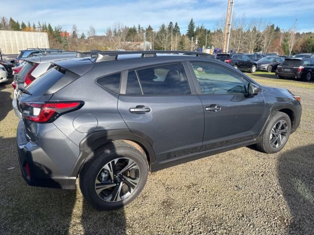 This 2025 Magnetite Gray Metallic Subaru Crosstrek Premium AWD is well equipped and includes these features and benefits: All-Weather Package (Dual-Mode Heated Front Seats, Heated Power Exterior Mirrors, and Windshield De-Icer Wipers), BSD/RCTA & All Wthr Pkg & Pwr Dr. Seat & Pwr Moonrf (10-Way Power Driver's Seat, Blind Spot Detection (BSD), Power Moonroof, and Rear Cross-Traffic Alert (RCTA) System), Carr Care Advantage Certified, 4-Wheel Disc Brakes, 6 Speakers, ABS brakes, Air Conditioning, All-Weather Floor Liners, Alloy wheels, AM/FM radio: SiriusXM, Anti-whiplash front head restraints, Auto High-beam Headlights, Automatic temperature control, Brake assist, Bumpers: body-color, Cargo Cover, Cloth Upholstery, Driver door bin, Driver vanity mirror, Dual front impact airbags, Dual front side impact airbags, Electronic Stability Control, Emergency communication system, Exterior Parking Camera Rear, Four wheel independent suspension, Front anti-roll bar, Front Bucket Seats, Front Center Armrest, Front dual zone A/C, Front fog lights, Front reading lights, Fully automatic headlights, Illuminated entry, Knee airbag, Low tire pressure warning, Occupant sensing airbag, Outside temperature display, Overhead airbag, Overhead console, Panic alarm, Passenger door bin, Passenger vanity mirror, Power door mirrors, Power steering, Power windows, Radio data system, Radio: Subaru 11.6" Multimedia Plus System, Rear anti-roll bar, Rear Bumper Cover, Rear seat center armrest, Rear window defroster, Rear window wiper, Remote keyless entry, Security system, Speed control, Speed-sensing steering, Split folding rear seat, Spoiler, Steering wheel mounted audio controls, Tachometer, Telescoping steering wheel, Tilt steering wheel, Traction control, Trip computer, Turn signal indicator mirrors, Variably intermittent wipers, and Wheels: 17" x 7.0" J Machine Finish Aluminum-Alloy. Lifetime powertrain warranty, No CARR payments for 4 months, Sign and Drive sales event!, CARR Cares Advantage up to $3100 in ownership savings, Ask us about our lifetime powertrain warranty!, 10-Way Power Driver's Seat, All-Weather Package, Blind Spot Detection (BSD), BSD/RCTA & All Wthr Pkg & Pwr Dr. Seat & Pwr Moonrf, Power Moonroof, Rear Cross-Traffic Alert (RCTA) System.