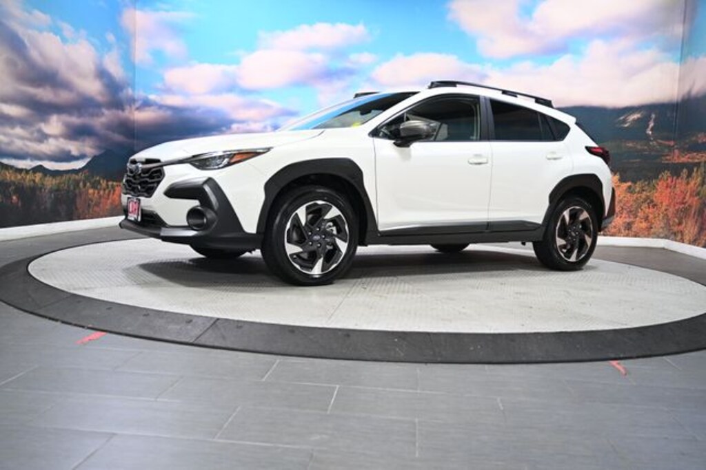 This 2025 Crystal White Pearl Subaru Crosstrek Limited AWD is well equipped and includes these features and benefits: Popular Package #3A (Auto-Dimming Exterior Mirror w/Approach Light, Auto-Dimming Mirror w/Compass & HomeLink, LED Upgrade, Rear Bumper Cover, and Rear Seatback Protector), Standard Model, Carr Care Advantage Certified, 4-Wheel Disc Brakes, 6 Speakers, ABS brakes, Active Cruise Control, Air Conditioning, Alloy wheels, AM/FM radio: SiriusXM, Anti-whiplash front head restraints, Auto High-beam Headlights, Automatic temperature control, Brake assist, Bumpers: body-color, Cargo Cover, Driver door bin, Driver vanity mirror, Dual front impact airbags, Dual front side impact airbags, Electronic Stability Control, Emergency communication system, Exterior Parking Camera Rear, Four wheel independent suspension, Front anti-roll bar, Front Bucket Seats, Front Center Armrest, Front dual zone A/C, Front fog lights, Front reading lights, Fully automatic headlights, Heated door mirrors, Heated Front Bucket Seats, Heated front seats, Illuminated entry, Knee airbag, Leather Shift Knob, Leather steering wheel, Leather-Trimmed Upholstery, Low tire pressure warning, Occupant sensing airbag, Outside temperature display, Overhead airbag, Overhead console, Panic alarm, Passenger door bin, Passenger vanity mirror, Power door mirrors, Power driver seat, Power steering, Power windows, Radio data system, Radio: Subaru 11.6" Multimedia Plus System, Rear anti-roll bar, Rear seat center armrest, Rear window defroster, Rear window wiper, Remote keyless entry, Security system, Speed control, Speed-sensing steering, Split folding rear seat, Spoiler, Steering wheel mounted audio controls, Tachometer, Telescoping steering wheel, Tilt steering wheel, Traction control, Trip computer, Turn signal indicator mirrors, Variably intermittent wipers, Wheels: 18" x 7.0" J Machine Finish Aluminum-Alloy, and Wireless Charger (DIO)