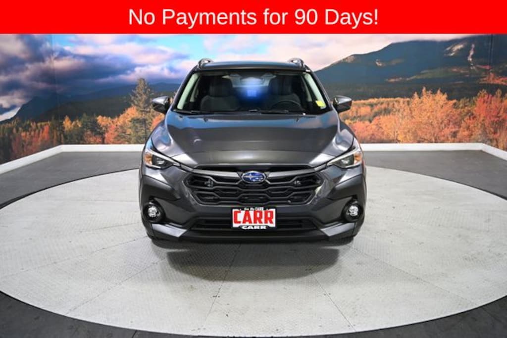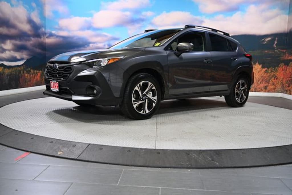 This 2025 Magnetite Gray Metallic/Crystal Black Silica Subaru Crosstrek Premium AWD is well equipped and includes these features and benefits: All-Weather Package (Dual-Mode Heated Front Seats, Heated Power Exterior Mirrors, and Windshield De-Icer Wipers), BSD/RCTA & All Wthr Pkg & Pwr Dr. Seat & Pwr Moonrf (10-Way Power Driver's Seat, Blind Spot Detection (BSD), Power Moonroof, and Rear Cross-Traffic Alert (RCTA) System), Crosstrek Mirror Package (Auto-Dimming Exterior Mirror w/Approach Light and Auto-Dimming Mirror w/Compass & HomeLink), Subaru Certified Pre-Owned Certified, 4-Wheel Disc Brakes, 6 Speakers, ABS brakes, Active Cruise Control, Air Conditioning, Alloy wheels, AM/FM radio: SiriusXM, Anti-whiplash front head restraints, Auto High-beam Headlights, Automatic temperature control, Brake assist, Bumpers: body-color, Cargo Cover, Cloth Upholstery, Driver door bin, Driver vanity mirror, Dual front impact airbags, Dual front side impact airbags, Electronic Stability Control, Emergency communication system, Exterior Parking Camera Rear, Four wheel independent suspension, Front anti-roll bar, Front Bucket Seats, Front Center Armrest, Front dual zone A/C, Front fog lights, Front reading lights, Fully automatic headlights, Illuminated entry, Knee airbag, Low tire pressure warning, Occupant sensing airbag, Outside temperature display, Overhead airbag, Overhead console, Panic alarm, Passenger door bin, Passenger vanity mirror, Power door mirrors, Power steering, Power windows, Radio data system, Radio: Subaru 11.6" Multimedia Plus System, Rear anti-roll bar, Rear seat center armrest, Rear window defroster, Rear window wiper, Remote keyless entry, Security system, Speed control, Speed-sensing steering, Split folding rear seat, Spoiler, Steering wheel mounted audio controls, Tachometer, Telescoping steering wheel, Tilt steering wheel, Traction control, Trip computer, Turn signal indicator mirrors, Variably intermittent wipers, and Wheels: 17" x 7.0" J Machine Finish Aluminum-Alloy.