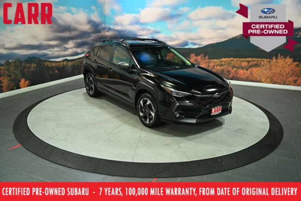 This 2025 Crystal Black Silica Subaru Crosstrek Limited AWD is well equipped and includes these features and benefits: harman/kardon Audio & Power Moonroof (harman/kardon Surround Sound Speaker System and Power Moonroof), Popular Package #3A (All-Weather Floor Liners, Auto-Dimming Exterior Mirror w/Approach Light, Auto-Dimming Mirror w/Compass & HomeLink, LED Upgrade, Rear Bumper Cover, and Rear Seatback Protector), Subaru Certified Pre-Owned Certified, Automatic temperature control, 4-Wheel Disc Brakes, 6 Speakers, ABS brakes, Active Cruise Control, Aero Crossbar Set, Air Conditioning, Alloy wheels, AM/FM radio: SiriusXM, Anti-whiplash front head restraints, Auto High-beam Headlights, Brake assist, Bumpers: body-color, Cargo Cover, Driver door bin, Driver vanity mirror, Dual front impact airbags, Dual front side impact airbags, Electronic Stability Control, Emergency communication system, Exterior Parking Camera Rear, Four wheel independent suspension, Front anti-roll bar, Front Bucket Seats, Front Center Armrest, Front dual zone A/C, Front fog lights, Front reading lights, Fully automatic headlights, Heated door mirrors, Heated Front Bucket Seats, Heated front seats, Illuminated entry, Knee airbag, Leather Shift Knob, Leather steering wheel, Leather-Trimmed Upholstery, Low tire pressure warning, Occupant sensing airbag, Outside temperature display, Overhead airbag, Overhead console, Panic alarm, Passenger door bin, Passenger vanity mirror, Power door mirrors, Power driver seat, Power steering, Power windows, Radio data system, Radio: Subaru 11.6" Multimedia Plus System, Rear anti-roll bar, Rear seat center armrest, Rear window defroster, Rear window wiper, Remote keyless entry, Security system, Speed control, Speed-sensing steering, Splash Guards, Split folding rear seat, Spoiler, Steering wheel mounted audio controls, Tachometer, Telescoping steering wheel, Tilt steering wheel, Traction control, Trip computer, Turn signal indicator mirrors, Variably intermittent wipers, and Wheels: 18" x 7.0" J Machine Finish Aluminum-Alloy. Subaru Certified Pre-Owned, 7 year or 100,000-mile Subaru Certified warranty, No CARR payments for 4 months, Sign and Drive sales event!, CARR Cares Advantage up to $3100 in ownership savings, Power moonroof, All-Weather Floor Liners, Auto-Dimming Exterior Mirror w/Approach Light, Auto-Dimming Mirror w/Compass & HomeLink, Automatic temperature control, harman/kardon Audio & Power Moonroof, harman/kardon Surround Sound Speaker System, LED Upgrade, Popular Package #3A, Power Moonroof, Rear Bumper Cover, Rear Seatback Protector.