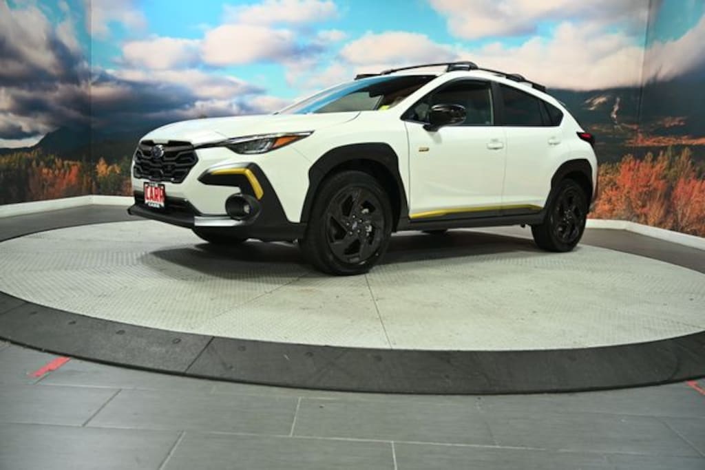 This 2025 Crystal White Pearl Subaru Crosstrek Sport AWD is well equipped and includes these features and benefits: BSD/RCTA & Power Driver Seat & Power Moonroof (10-Way Power Driver's Seat, Blind Spot Detection (BSD), Power Moonroof, and Rear Cross-Traffic Alert (RCTA) System), Popular Package #3A (Auto-Dimming Exterior Mirror w/Approach Light, Auto-Dimming Mirror w/Compass & HomeLink, LED Upgrade, Rear Bumper Cover, and Rear Seatback Protector), Subaru Certified Pre-Owned Certified, 4-Wheel Disc Brakes, 6 Speakers, ABS brakes, Active Cruise Control, Aero Crossbar Set, Air Conditioning, Alloy wheels, AM/FM radio: SiriusXM, Anti-whiplash front head restraints, Auto High-beam Headlights, Automatic temperature control, Brake assist, Bumpers: body-color, Cargo Cover, Driver door bin, Driver vanity mirror, Dual front impact airbags, Dual front side impact airbags, Electronic Stability Control, Emergency communication system, Exterior Parking Camera Rear, Four wheel independent suspension, Front anti-roll bar, Front Bucket Seats, Front Center Armrest, Front dual zone A/C, Front fog lights, Front reading lights, Fully automatic headlights, Heated door mirrors, Heated Front Bucket Seats, Heated front seats, Illuminated entry, Knee airbag, Leather Shift Knob, Leather steering wheel, Low tire pressure warning, Occupant sensing airbag, Outside temperature display, Overhead airbag, Overhead console, Panic alarm, Passenger door bin, Passenger vanity mirror, Power door mirrors, Power steering, Power windows, Radio data system, Radio: Subaru 11.6" Multimedia Plus System, Rear anti-roll bar, Rear seat center armrest, Rear window defroster, Rear window wiper, Remote keyless entry, Security system, Speed control, Speed-sensing steering, Split folding rear seat, Spoiler, Sport Cloth Upholstery, Steering wheel mounted audio controls, Tachometer, Telescoping steering wheel, Tilt steering wheel, Traction control, Trip computer, Turn signal indicator mirrors, Variably intermittent wipers, and Wheels: 18" x 7.0" J Dark Gray Aluminum-Alloy.