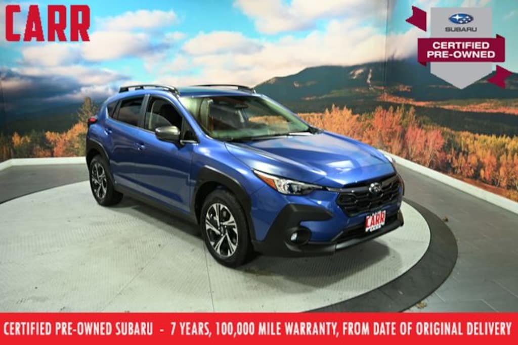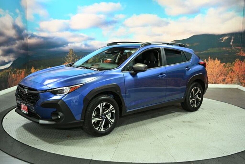 This 2025 Daybreak Blue Pearl Subaru Crosstrek Premium AWD is well equipped and includes these features and benefits: All-Weather Package (Dual-Mode Heated Front Seats, Heated Power Exterior Mirrors, and Windshield De-Icer Wipers), BSD/RCTA & All Wthr Pkg & Pwr Dr. Seat & Pwr Moonrf (10-Way Power Driver's Seat, Blind Spot Detection (BSD), Power Moonroof, and Rear Cross-Traffic Alert (RCTA) System), Crosstrek Mirror Package (Auto-Dimming Exterior Mirror w/Approach Light and Auto-Dimming Mirror w/Compass & HomeLink), Subaru Certified Pre-Owned Certified, 4-Wheel Disc Brakes, 6 Speakers, ABS brakes, Active Cruise Control, Air Conditioning, Alloy wheels, AM/FM radio: SiriusXM, Anti-whiplash front head restraints, Auto High-beam Headlights, Automatic temperature control, Brake assist, Bumpers: body-color, Cloth Upholstery, Driver door bin, Driver vanity mirror, Dual front impact airbags, Dual front side impact airbags, Electronic Stability Control, Emergency communication system, Exterior Parking Camera Rear, Four wheel independent suspension, Front anti-roll bar, Front Bucket Seats, Front Center Armrest, Front dual zone A/C, Front fog lights, Front reading lights, Fully automatic headlights, Illuminated entry, Knee airbag, Low tire pressure warning, Occupant sensing airbag, Outside temperature display, Overhead airbag, Overhead console, Panic alarm, Passenger door bin, Passenger vanity mirror, Power door mirrors, Power steering, Power windows, Radio data system, Radio: Subaru 11.6" Multimedia Plus System, Rear anti-roll bar, Rear seat center armrest, Rear window defroster, Rear window wiper, Remote keyless entry, Security system, Speed control, Speed-sensing steering, Split folding rear seat, Spoiler, Steering wheel mounted audio controls, Tachometer, Telescoping steering wheel, Tilt steering wheel, Traction control, Trip computer, Turn signal indicator mirrors, Variably intermittent wipers, and Wheels: 17" x 7.0" J Machine Finish Aluminum-Alloy. Subaru Certified Pre-Owned, 7 year or 100,000-mile Subaru Certified warranty, No CARR payments for 4 months, Sign and Drive sales event!, CARR Cares Advantage up to $3100 in ownership savings, 10-Way Power Driver's Seat, All-Weather Package, Blind Spot Detection (BSD), BSD/RCTA & All Wthr Pkg & Pwr Dr. Seat & Pwr Moonrf, Dual-Mode Heated Front Seats, Heated Power Exterior Mirrors, Power Moonroof, Rear Cross-Traffic Alert (RCTA) System, Windshield De-Icer Wipers.