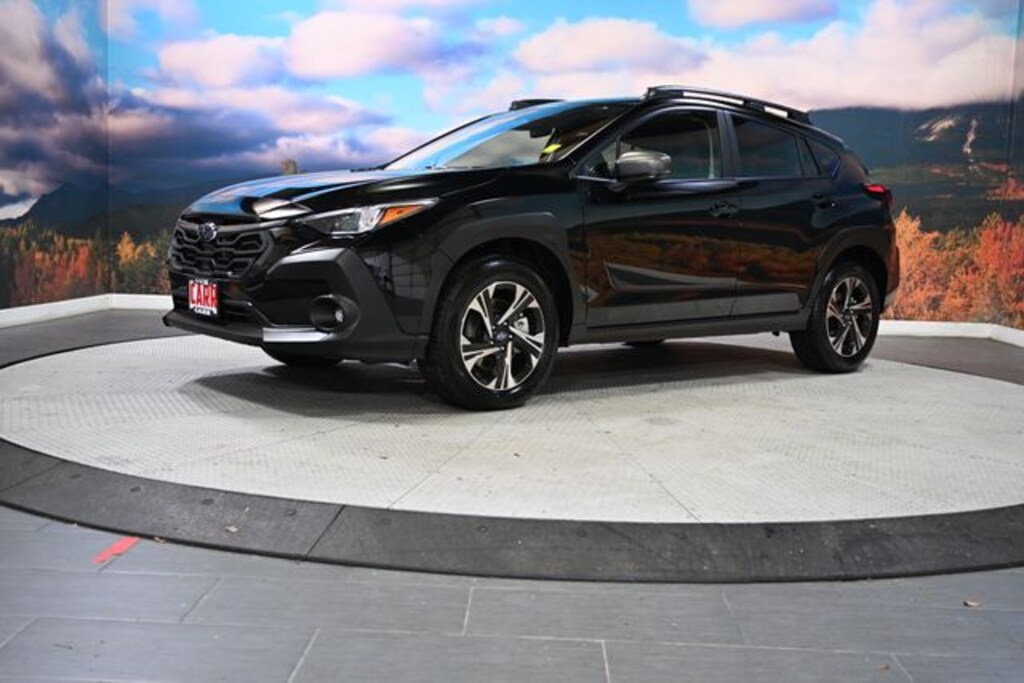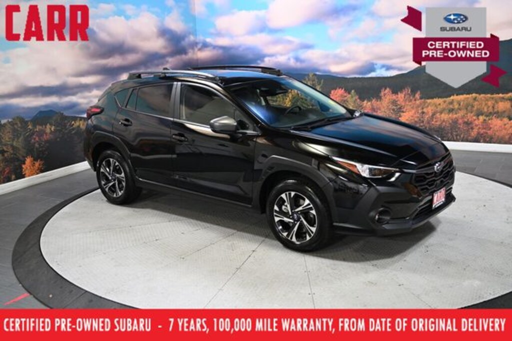 This 2025 Crystal Black Silica Subaru Crosstrek Premium AWD is well equipped and includes these features and benefits: All-Weather Package (Dual-Mode Heated Front Seats, Heated Power Exterior Mirrors, and Windshield De-Icer Wipers), BSD/RCTA & All Wthr Pkg & Pwr Dr. Seat & Pwr Moonrf (10-Way Power Driver's Seat, Blind Spot Detection (BSD), Power Moonroof, and Rear Cross-Traffic Alert (RCTA) System), Crosstrek Mirror Package (Auto-Dimming Exterior Mirror w/Approach Light and Auto-Dimming Mirror w/Compass & HomeLink), Subaru Certified Pre-Owned Certified, 4-Wheel Disc Brakes, 6 Speakers, ABS brakes, Active Cruise Control, Air Conditioning, Alloy wheels, AM/FM radio: SiriusXM, Anti-whiplash front head restraints, Auto High-beam Headlights, Automatic temperature control, Brake assist, Bumpers: body-color, Cloth Upholstery, Driver door bin, Driver vanity mirror, Dual front impact airbags, Dual front side impact airbags, Electronic Stability Control, Emergency communication system, Exterior Parking Camera Rear, Four wheel independent suspension, Front anti-roll bar, Front Bucket Seats, Front Center Armrest, Front dual zone A/C, Front fog lights, Front reading lights, Fully automatic headlights, Illuminated entry, Knee airbag, Low tire pressure warning, Occupant sensing airbag, Outside temperature display, Overhead airbag, Overhead console, Panic alarm, Passenger door bin, Passenger vanity mirror, Power door mirrors, Power steering, Power windows, Radio data system, Radio: Subaru 11.6" Multimedia Plus System, Rear anti-roll bar, Rear seat center armrest, Rear window defroster, Rear window wiper, Remote keyless entry, Security system, Speed control, Speed-sensing steering, Split folding rear seat, Spoiler, Steering wheel mounted audio controls, Tachometer, Telescoping steering wheel, Tilt steering wheel, Traction control, Trip computer, Turn signal indicator mirrors, Variably intermittent wipers, and Wheels: 17" x 7.0" J Machine Finish Aluminum-Alloy. Subaru Certified Pre-Owned, 7 year or 100,000-mile Subaru Certified warranty, No CARR payments for 4 months, Sign and Drive sales event!, CARR Cares Advantage up to $3100 in ownership savings, 10-Way Power Driver's Seat, All-Weather Package, Blind Spot Detection (BSD), BSD/RCTA & All Wthr Pkg & Pwr Dr. Seat & Pwr Moonrf, Dual-Mode Heated Front Seats, Heated Power Exterior Mirrors, Power Moonroof, Rear Cross-Traffic Alert (RCTA) System, Windshield De-Icer Wipers.
