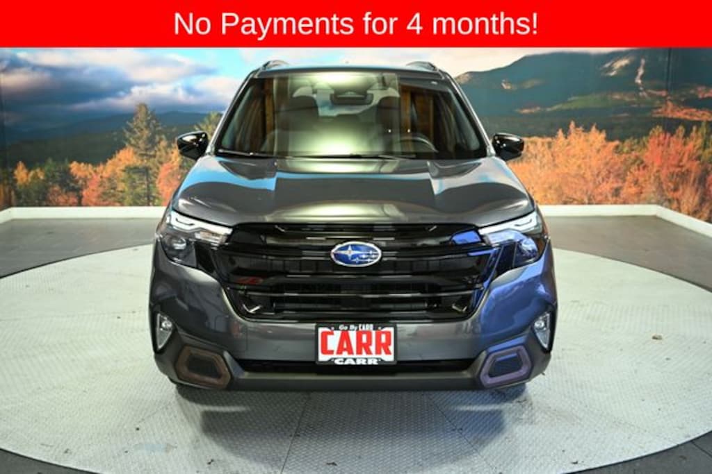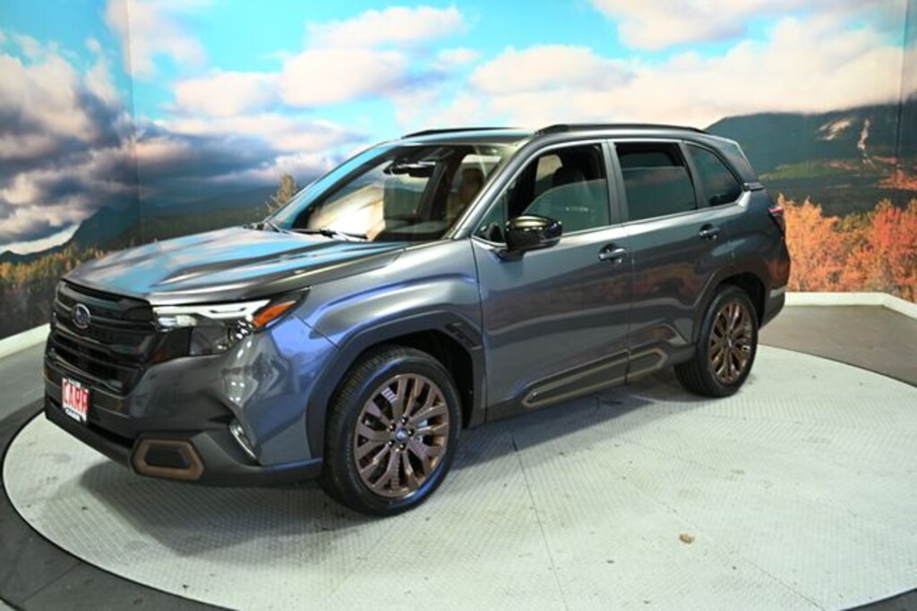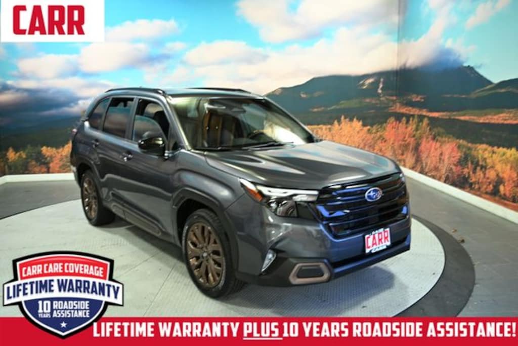 This 2025 Magnetite Gray Metallic Subaru Forester Sport AWD is well equipped and includes these features and benefits: harman/kardon Audio & Power Rear Gate & RAB (harman/kardon Speaker System, Power Rear Gate, and Reverse Automatic Braking (RAB) System), Popular Package #1 (Auto-Dimming Exterior Mirror w/Approach Light, Auto-Dimming Mirror w/Compass & HomeLink, Cargo Tray, and Rear Bumper Cover), Carr Care Advantage Certified, 4-Wheel Disc Brakes, 6 Speakers, ABS brakes, Air Conditioning, All-Weather Floor Liners, Alloy wheels, AM/FM radio: SiriusXM with 360L, Anti-whiplash front head restraints, Auto High-beam Headlights, Automatic temperature control, Brake assist, Bumpers: body-color, Driver door bin, Driver vanity mirror, Dual front impact airbags, Dual front side impact airbags, Electronic Stability Control, Emergency communication system: MySubaru Safety (3-year free trial), Exterior Parking Camera Rear, Four wheel independent suspension, Front anti-roll bar, Front Bucket Seats, Front Center Armrest, Front dual zone A/C, Front fog lights, Front reading lights, Fully automatic headlights, Heated door mirrors, Heated Front Bucket Seats, Heated front seats, Illuminated entry, Knee airbag, Leather steering wheel, Low tire pressure warning, Occupant sensing airbag, Outside temperature display, Overhead airbag, Overhead console, Panic alarm, Passenger door bin, Passenger vanity mirror, Power door mirrors, Power driver seat, Power moonroof: Panoramic, Power steering, Power windows, Radio data system, Radio: Subaru 11.6" Multimedia Plus System, Rear anti-roll bar, Rear seat center armrest, Rear window defroster, Rear window wiper, Remote keyless entry, Security system, Speed control, Speed-sensing steering, Split folding rear seat, Spoiler, Sport StarTex Upholstery, Steering wheel mounted audio controls, Tachometer, Telescoping steering wheel, Tilt steering wheel, Traction control, Trip computer, Turn signal indicator mirrors, Variably intermittent wipers, and Wheels: 19" x 7.5 J Bronze Finish Aluminum-Alloy. Lifetime powertrain warranty, No CARR payments for 4 months, Sign and Drive sales event!, CARR Cares Advantage up to $3100 in ownership savings, Ask us about our lifetime powertrain warranty!, Auto-Dimming Exterior Mirror w/Approach Light, Auto-Dimming Mirror w/Compass & HomeLink, Cargo Tray, harman/kardon Audio & Power Rear Gate & RAB, harman/kardon Speaker System, Popular Package #1, Power Rear Gate, Rear Bumper Cover, Reverse Automatic Braking (RAB) System.