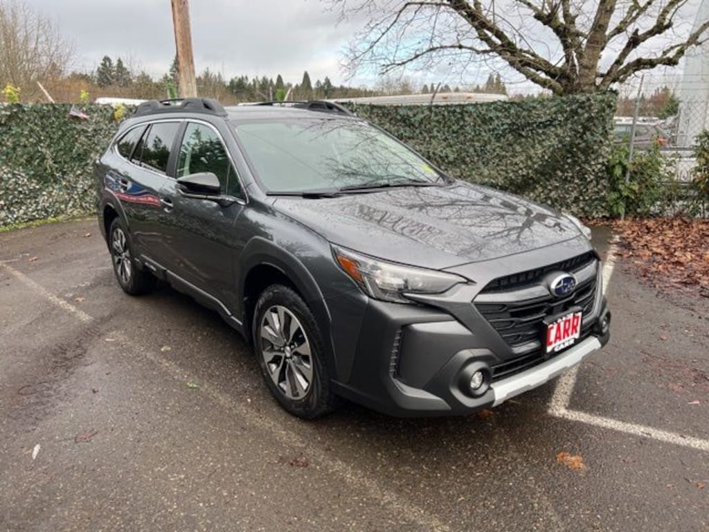 This 2025 Magnetite Gray Metallic Subaru Outback Limited AWD is well equipped and includes these features and benefits: Popular Package #2 (Auto-Dimming Exterior Mirror w/Approach Light, LED Upgrade, Rear Bumper Cover, Rear Seat Back Protector, and Splash Guards), Standard Model, Carr Care Advantage Certified, Navigation system: TomTom Navigation w/what3words, Power moonroof, 12 Speakers, 4-Wheel Disc Brakes, ABS brakes, Active Cruise Control, Air Conditioning, Alloy wheels, AM/FM radio: SiriusXM with 360L, Apple CarPlay & Android Auto, Auto High-beam Headlights, Auto-Dimming Mirror w/Compass & HomeLink (DIO), Auto-dimming Rear-View mirror, Automatic temperature control, Brake assist, Bumpers: body-color, Cargo Cover, Compass, Driver door bin, Driver vanity mirror, Dual front impact airbags, Dual front side impact airbags, Electronic Stability Control, Emergency communication system: MySubaru Safety (3-year free trial), Exterior Parking Camera Rear, Four wheel independent suspension, Front anti-roll bar, Front Bucket Seats, Front Center Armrest w/Storage, Front dual zone A/C, Front fog lights, Front reading lights, Fully automatic headlights, Garage door transmitter: HomeLink, harman/kardon® Speakers, Heated door mirrors, Heated Front Bucket Seats, Heated front seats, Heated rear seats, Heated steering wheel, HVAC memory, Illuminated entry, Knee airbag, Leather Shift Knob, Leather steering wheel, Low tire pressure warning, Memory seat, Occupant sensing airbag, Outside temperature display, Overhead airbag, Overhead console, Panic alarm, Passenger door bin, Passenger vanity mirror, Perforated Leather-Trimmed Upholstery, Power door mirrors, Power driver seat, Power Liftgate, Power passenger seat, Power steering, Power windows, Radio: Subaru 11.6" Multimedia System w/Navigation, Rear anti-roll bar, Rear seat center armrest, Rear window defroster, Rear window wiper, Remote keyless entry, Roof rack, Security system, Speed control, Speed-sensing steering, Split folding rear seat, Spoiler, Steering wheel mounted audio controls, Tachometer, Telescoping steering wheel, Tilt steering wheel, Traction control, Trip computer, Turn signal indicator mirrors, Variably intermittent wipers, and Wheels: 18" x 7J Black Aluminum-Alloy. Lifetime powertrain warranty, No CARR payments for 4 months, Sign and Drive sales event!, CARR Cares Advantage up to $3100 in ownership savings, Ask us about our lifetime powertrain warranty!, Auto-Dimming Exterior Mirror w/Approach Light, LED Upgrade, Navigation system: TomTom Navigation w/what3words, Popular Package #2, Power moonroof, Rear Bumper Cover, Rear Seat Back Protector, Splash Guards.