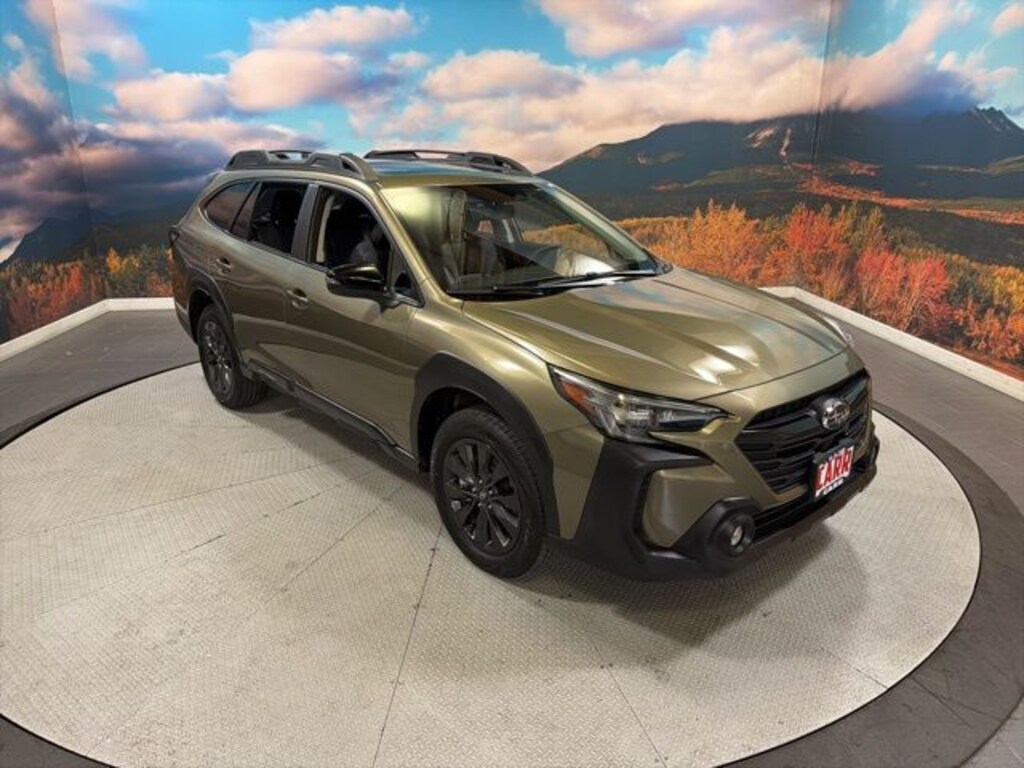 This 2025 Autumn Green Metallic Subaru Outback Onyx Edition AWD is well equipped and includes these features and benefits: Standard Model, Subaru Certified Pre-Owned Certified, 12 Speakers, 4-Wheel Disc Brakes, ABS brakes, Air Conditioning, Alloy wheels, AM/FM radio: SiriusXM with 360L, Apple CarPlay & Android Auto, Auto High-beam Headlights, Auto-dimming Rear-View mirror, Automatic temperature control, Brake assist, Bumpers: body-color, Compass, Driver door bin, Driver vanity mirror, Dual front impact airbags, Dual front side impact airbags, Electronic Stability Control, Emergency communication system: MySubaru Safety (3-year free trial), Exterior Parking Camera Rear, Four wheel independent suspension, Front anti-roll bar, Front Bucket Seats, Front Center Armrest w/Storage, Front dual zone A/C, Front fog lights, Front reading lights, Fully automatic headlights, Garage door transmitter: HomeLink, harman/kardon® Speakers, Heated door mirrors, Heated Front Bucket Seats, Heated front seats, Heated steering wheel, Illuminated entry, Knee airbag, Leather Shift Knob, Leather steering wheel, Low tire pressure warning, Occupant sensing airbag, Outside temperature display, Overhead airbag, Overhead console, Panic alarm, Passenger door bin, Passenger vanity mirror, Power door mirrors, Power driver seat, Power Liftgate, Power moonroof, Power steering, Power windows, Radio: Subaru 11.6" Multimedia Plus System, Rear anti-roll bar, Rear seat center armrest, Rear window defroster, Rear window wiper, Remote keyless entry, Roof rack, Security system, Speed control, Speed-sensing steering, Split folding rear seat, Spoiler, StarTex-Trimmed Upholstery, Steering wheel mounted audio controls, Tachometer, Telescoping steering wheel, Tilt steering wheel, Traction control, Trip computer, Turn signal indicator mirrors, Variably intermittent wipers, and Wheels: 18" x 7J Black Aluminum-Alloy. Subaru Certified Pre-Owned, 7 year or 100,000-mile Subaru Certified warranty, No CARR payments for 4 months, Sign and Drive sales event!, CARR Cares Advantage up to $3100 in ownership savings.