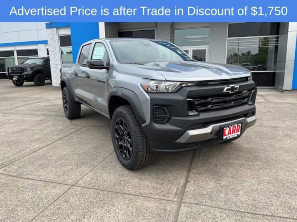 Dealer Discount of $4,895 off MSRPCarr Chevrolet is a trusted dealership known for excellent service, a wide range of new and pre-owned vehicles, and competitive pricing, as well as excellent customer service reflected in our 4.5-star Google rating. Committed to our community and building lifelong customer relationships, we include CARR Care coverage, our exclusive lifetime powertrain warranty and 10 years of roadside assistance with most vehicles. 2026 Chevrolet Colorado Trail Boss 4WD Sterling Gray Metallic4WD.This 2026 Sterling Gray Metallic Chevrolet Colorado Trail Boss 4WD is well equipped and includes these features and benefits: Preferred Equipment Group 0TR (Automatic Emergency Braking, Chevy Safety Assist, Following Distance Indicator, Forward Collision Alert, Front Pedestrian & Bicyclist Braking, IntelliBeam Automatic High Beam On/Off, and Lane Keep Assist w/Lane Departure Warning), Technology Package (Adaptive Cruise Control, HD Surround Vision, and Rear Pedestrian Alert), Trail Boss Convenience Package II (4-Spoke Wrapped Steering Wheel, 8-Way Power Driver Seat Adjuster, Driver & Front Passenger Heated Seats, Evotex Seat Trim, Heated Steering Wheel, Power Driver Lumbar Control Seat Adjuster, Remote Vehicle Starter System, and Wireless Phone Charging), 4WD, 3.42 Rear Axle Ratio, 4-Way Manual Passenger Seat Adjuster, 4-Wheel Disc Brakes, 6 Speakers, 6-Speaker Audio System Feature, 6-Way Manual Driver Seat Adjuster, ABS brakes, Air Conditioning, Alloy wheels, AM/FM radio: SiriusXM with 360L, Apple CarPlay/Android Auto, Auto High-beam Headlights, Automatic temperature control, Black Nameplates (LPO), Brake assist, Cargo Tie-Down Rings (Set of 4) (LPO), Cloth Seat Trim, Compass, Delay-off headlights, Driver door bin, Driver vanity mirror, Dual front impact airbags, Dual front side impact airbags, Electronic Stability Control, Emergency communication system: OnStar, Front anti-roll bar, Front Bucket Seats, Front Center Armrest, Front dual zone A/C, Front License Plate Kit, Front wheel independent suspension, Gloss Black Tailgate Lettering (LPO), Heated door mirrors, Illuminated entry, Low tire pressure warning, Navigation System, Occupant sensing airbag, Outside temperature display, Overhead airbag, Overhead console, Panic alarm, Passenger door bin, Passenger vanity mirror, Power door mirrors, Power steering, Power windows, Radio data system, Radio: 11.3 Diagonal Advanced Color LCD Display, Rear reading lights, Rear step bumper, Rear window defroster, Remote keyless entry, Security system, SiriusXM w/360L Trial Subscription, Speed control, Speed-sensing steering, Split folding rear seat, Steering Wheel Mounted Audio Controls, Steering wheel mounted audio controls, Tachometer, Tilt steering wheel, Traction control, Trip computer, Variably intermittent wipers, Wheels: 18 x 8.5 Black High Gloss Aluminum, Wheels: 20 x 9 High Gloss Black Aluminum, and Wireless Phone Projection. Price includes: $500 - Customer Cash. Exp. 12/01/2025