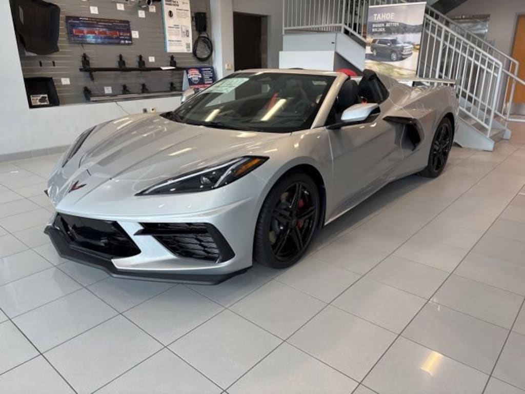 This 2026 Blade Silver Metallic Chevrolet Corvette Stingray RWD is well equipped and includes these features and benefits: Battery Protection Package, Contoured Liner Protection Package (All-Weather Floor Liners with Jake Logo and Contoured Cargo Area Liners with Jake Logo), Convertible Engine Appearance Package (Black LT2 Engine Cover and Engine Specification Plaque), Custom Leather Wrapped Interior Package, Memory Driver and Passenger Convenience Package, Preferred Equipment Group 3LT (2 Cargo Nets, 8-Way Power Driver Seat Adjuster, 8-Way Power Passenger Seat Adjuster, Bose Performance Series Sound System with 14 Speakers, Driver Power Bolster Seat Adjuster, Electrical Theft Deterrent System, GT2 Bucket Seats, HD Front and Rear Vision Cameras, Head-Up Display, Heated and Vented Driver and Passenger Seats, Heated Steering Wheel, Passenger Power Bolster Seat Adjuster, Performance Data and Video Recorder, Power Driver Lumbar Control Seat Adjuster, Power Passenger Lumbar Control Seat Adjuster, Power-Adjustable Outside Heated Mirrors, Rear Cross Traffic Alert, Side Blind Zone Alert, Universal Home Remote, Vehicle Inclination Theft Deterrent Sensor, Vehicle Interior Movement Theft Deterrent Sensor, and Wireless Phone Charging), Sueded Microfiber-Wrapped Upper Interior Trim Package, Z51 Performance Package (Electronic Limited-Slip Differential, Heavy-Duty Cooling System, Performance Exhaust with Stainless-Steel Tips, Performance Rear Axle Ratio, Rear Z51 Spoiler, Z51 Performance Brakes, and Z51 Performance Suspension), 14 Speakers, 4-Wheel Disc Brakes, ABS brakes, Adrenaline Red Custom Leather Stitch, Air Conditioning, Alloy wheels, AM/FM radio: SiriusXM, Auto High-beam Headlights, Auto-dimming door mirrors, Auto-dimming Rear-View mirror, Automatic Leveling System Headlamp Control, Automatic temperature control, Black Custom Splash Guards, Black Lug Nuts, Black Wheel Locks, Brake assist, Bumpers: body-color, Compass, Convertible HardTop, Convertible roof lining, Delay-off headlights, Driver door bin, Driver vanity mirror, Dual front impact airbags, Dual front side impact airbags, Edge Red LT2 Engine Cover, Edge Red-Painted Calipers, Electronic Stability Control, Emergency communication system: OnStar and Chevrolet connected services capable, Exterior Parking Camera Rear, Four wheel independent suspension, Front anti-roll bar, Front Bucket Seats, Front Center Armrest, Front dual zone A/C, Front License Plate Bracket, Front Lift Adjustable Height with Memory, Front reading lights, Fully automatic headlights, Garage door transmitter, Glass rear window, Heads-Up Display, Heated door mirrors, Heated front seats, Heated steering wheel, Illuminated entry, Integrated roll-over protection, Lane Departure Warning System, Leather Shift Knob, Leather steering wheel, Low tire pressure warning, Memory seat, Napa Leather Seating Surfaces with Perforated Inserts, Navigation System, Occupant sensing airbag, Outside temperature display, Overhead console, Panic alarm, Passenger door bin, Passenger vanity mirror, Power convertible roof, Power door mirrors, Power driver seat, Power passenger seat, Power steering, Power windows, Premium audio system: Chevrolet Infotainment 3 Premium, Radio data system, Radio: Infotainment System with Google Built-in, Rear anti-roll bar, Rear window defroster, Remote keyless entry, Security system, Speed control, Speed-sensing steering, Sport steering wheel, Steering wheel memory, Ste