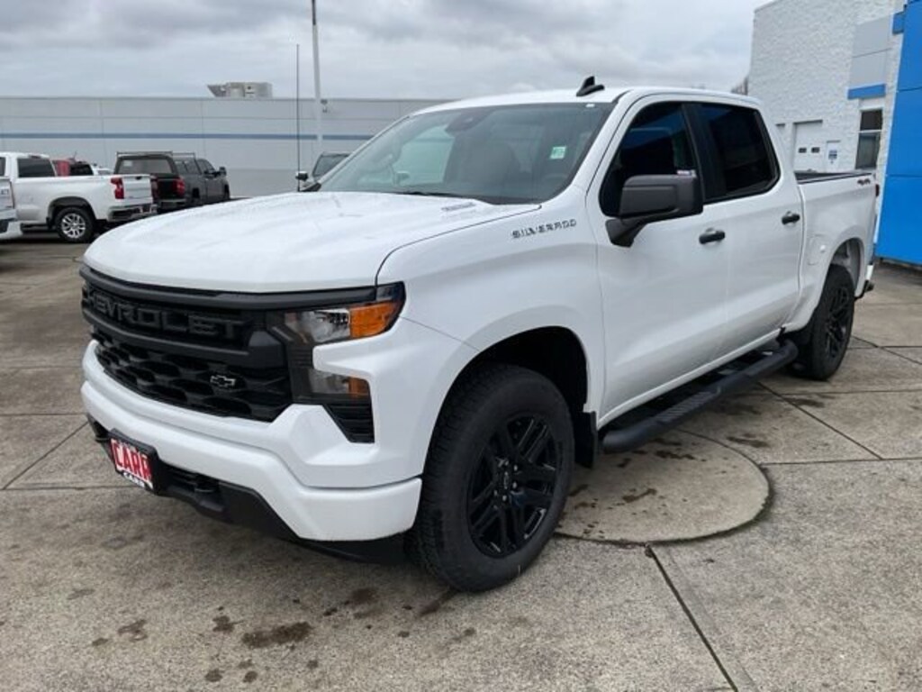 This 2026 Summit White Chevrolet Silverado 1500 Custom 4WD is well equipped and includes these features and benefits: Custom Convenience Package (Electric Rear-Window Defogger, EZ Lift Power Lock & Release Tailgate, LED Cargo Area Lighting, Remote Vehicle Starter System, and Theft Deterrent System (Unauthorized Entry)), Custom Value Package, Dark Essentials Package (LPO) (Black Name Plates (LPO)), High Capacity Suspension Package, Preferred Equipment Group 1CX (10-Way Power Driver Seat w/Lumbar, 120-Volt Bed Mounted Power Outlet, 120-Volt Interior Power Outlet, 3.5 Monochromatic Display Driver Info Center, Bluetooth® For Phone, Color-Keyed Carpeting Floor Covering, Deep-Tinted Glass, Dual Rear USB Ports (Charge Only), Electronic Cruise Control, Front Frame-Mounted Black Recovery Hooks, Front Rubberized Vinyl Floor Mats, HD Rear Vision Camera, Manual Tilt Wheel Steering Column, OnStar Services Capable, Power Front Windows w/Driver Express Up/Down, Power Front Windows w/Passenger Express Down, Power Rear Windows w/Express Down, Rear 60/40 Folding Bench Seat (Folds Up), Rear Rubberized-Vinyl Floor Mats, Remote Keyless Entry, SiriusXM Trial Subscription, Standard Tailgate, Teen Driver, Tire Pressure Monitoring System, and Wi-Fi Hot Spot Capable), Trailering Package (Hitch Guidance), TurboMax Blackout Package (4 Black Round Assist Steps (LPO), Black Chrome Exhaust Tip (LPO), and Wheels: 20 x 9 High Gloss Black Painted Alum), 8-Speed Automatic, 4WD, Jet Black Cloth, 3.42 Rear Axle Ratio, 4-Wheel Disc Brakes, 40/20/40 Front Split-Bench Seat, 6 Speakers, 6-Speaker Audio System, ABS brakes, Air Conditioning, Alloy wheels, AM/FM radio: SiriusXM, Apple CarPlay/Android Auto, Auto High-beam Headlights, Auto-Locking Rear Differential, Automatic Emergency Braking, Black Tailgate CHEVROLET Lettering (LPO), Brake assist, Bumpers: body-color, Cloth Seat Trim, Compass, Delay-off headlights, Driver door bin, Driver vanity mirror, Dual front impact airbags, Dual front side impact airbags, Electronic Stability Control, Emergency communication system: OnStar, Following Distance Indicator, Forward Collision Alert, Front anti-roll bar, Front Black Bowtie Emblem (LPO), Front Center Armrest w/Storage, Front License Plate Kit, Front Pedestrian Braking, Front reading lights, Front wheel independent suspension, Fully automatic headlights, Heated door mirrors, Illuminated entry, IntelliBeam Automatic High Beam On/Off, Lane Keep Assist w/Lane Departure Warning, Low tire pressure warning, Occupant sensing airbag, Outside temperature display, Overhead airbag, Overhead console, Panic alarm, Passenger door bin, Passenger vanity mirror, Power door mirrors, Power driver seat, Power steering, Power windows, Premium audio system: Chevrolet Infotainment 3, Radio data system, Radio: Chevrolet Infotainment 3 System, Rear reading lights, Rear step bumper, Rear window defroster, Remote keyless entry, Security system, Speed control, Speed-sensing steering, Split folding rear seat, Tachometer, Tilt steering wheel, Traction control, Trip computer, Variably intermittent wipers, Voltmeter, and Wheels: 20 x 9 Bright Silver Painted Aluminum. Price includes: $1000 - Bonus Cash. Exp. 02/02/2026 $1000 - Select Market Purchase Bonus Cash. Exp. 02/02/2026 $3000 - Customer Cash. Exp. 02/02/2026