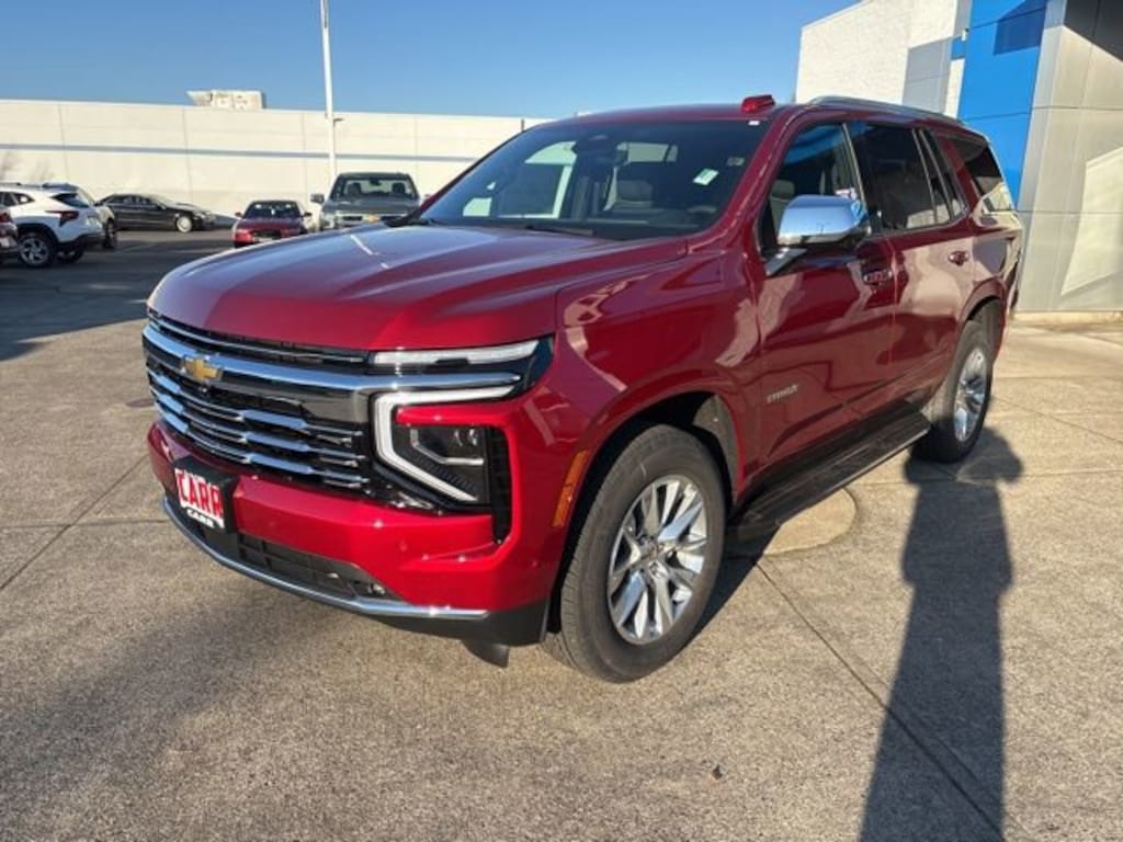 This 2026 Radiant Red Tintcoat Chevrolet Tahoe Premier 4WD is well equipped and includes these features and benefits: Advanced Security Package (Glass Breakage Sensor, Theft-Deterrent Alarm System, Vehicle Inclination Sensor, and Vehicle Interior Movement Sensor), Advanced Trailering Package (Blind Zone Steering Assist with Trailering, Hitch View with Pan/Zoom Image Adjustment, and Smart Trailer Integration Indicator), License Plate Front Mounting Package, Max Trailering Package (2-Speed Active Electronic AutoTrac Transfer Case, Hill Descent Control, and Integrated Trailer Brake Controller), Preferred Equipment Group 1LZ (1st and 2nd Row Color-Keyed Carpeted Floor Mats, 20 x 9 Polished Aluminum Wheels, 3-Spoke Wrapped Steering Wheel, 3rd Row 60/40 Power-Folding Split-Bench Seat, Auto-Dimming Inside Rear-View Mirror, Bose 10-Speaker Centerpoint Surround Audio System Feature, Bright Front and Rear Door Sill Plates, Chrome Door Handles with Body-Color Strip, Chrome Mirror Caps, Color-Keyed Carpeting Floor Covering, Dual Exhaust System, Floor Console, Front Bucket Seats, Front LED Fog Lamps, Frontal Driver and Outboard Passenger Airbags, Heated 2nd Row Outboard Seats, Heated Steering Wheel, Interior Camera, Key Card, LED Headlamps with LED Daytime Running Lamps, LED Tail Lamps, Magnetic Ride Control Suspension, Memory Settings, Outside Heated Power-Adjustable Mirrors, Power Release 2nd Row Bucket Seats, Power Tilt and Telescopic Steering Column, Rear Power Liftgate, Remote Start, SiriusXM with 360L Trial Subscription, Universal Home Remote, and Wireless Phone Charging), Technology & Entertainment Package (Dual-Pane Power Panoramic Sunroof and Rear Seat Media System), Technology Package (15 Diagonal Multi-Color Head-Up Display, AutoSense Hands-Free Power Liftgate, and Inside Rearview Auo-Dimming Rear Camera Mirror), 4WD, Black Leather, 10 Speakers, 3.23 Rear Axle Ratio, 3rd row seats: split-bench, 4-Way Power Driver Lumbar Seat Adjuster, 4-Way Power Front Passenger Lumbar Seat Adjuster, 4-Wheel Disc Brakes, 8-Way Power Driver Seat Adjuster, 8-Way Power Front Passenger Seat Adjuster, ABS brakes, Adaptive suspension, Air Conditioning, Alloy wheels, AM/FM radio: SiriusXM with 360L, Apple CarPlay/Android Auto, Auto High-beam Headlights, Auto-dimming door mirrors, Auto-dimming Rear-View mirror, Auto-leveling suspension, Automatic temperature control, Brake assist, Bumpers: body-color, Compass, Delay-off headlights, Driver and Front Passenger Heated and Ventilated Seats, Driver door bin, Driver vanity mirror, Dual front impact airbags, Dual front side impact airbags, Electronic Stability Control, Emergency communication system: OnStar and Chevrolet connected services capable, Exterior Parking Camera Rear, Extra Capacity Cooling System, Four wheel independent suspension, Front anti-roll bar, Front Center Armrest, Front dual zone A/C, Front fog lights, Front reading lights, Fully automatic headlights, Garage door transmitter, Heated door mirrors, Heated Driver and Front Passenger Seats, Heated front seats, Heated rear seats, Heated steering wheel, Illuminated entry, Low tire pressure warning, Memory seat, Navigation system: Google built-in compatibility (select service plan required, terms and limitations apply), Occupant sensing airbag, Outside temperature display, Overhead airbag, Overhead console, Panic alarm, Passenger door bin, Passenger vanity mirror, Perforated Leather Seat Trim, Po