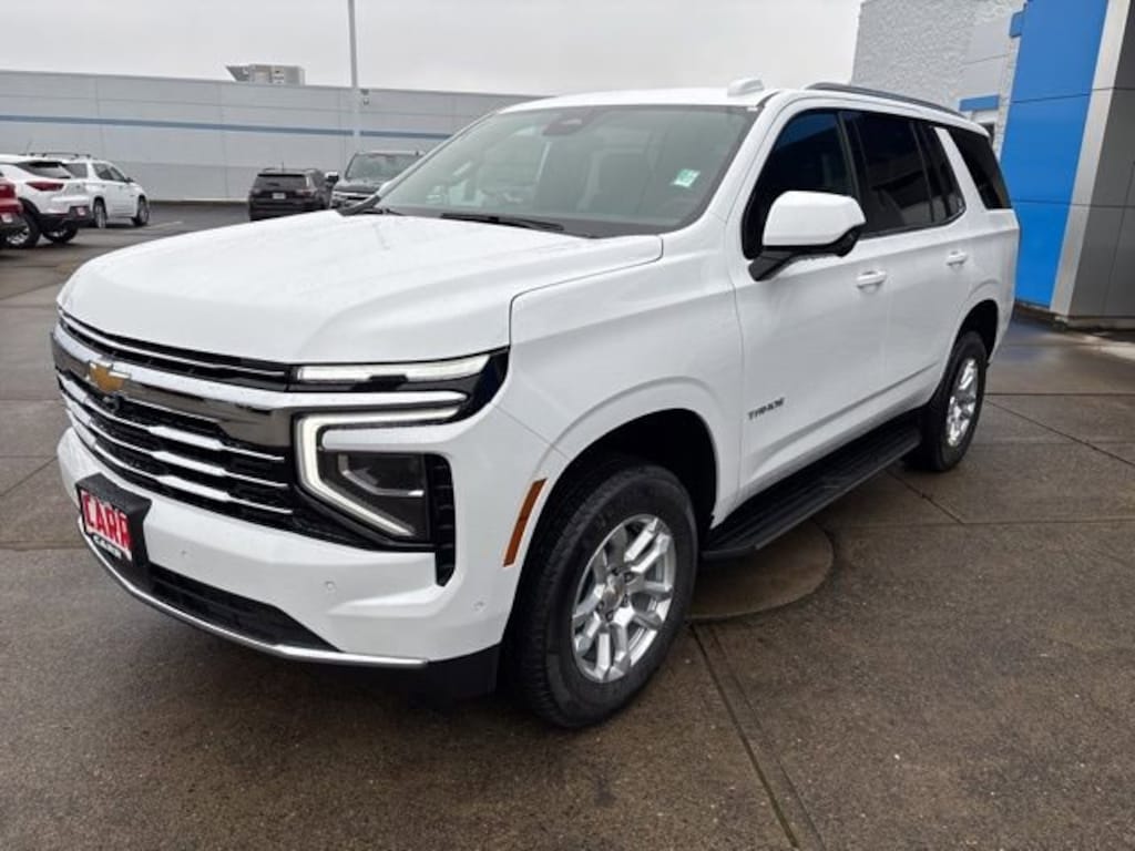 This 2026 Summit White Chevrolet Tahoe LT 4WD is well equipped and includes these features and benefits: License Plate Front Mounting Package, Preferred Equipment Group 1LT (1st and 2nd Row Color-Keyed Carpeted Floor Mats, 3-Spoke Wrapped Steering Wheel, 3rd Row Manual 60/40 Split-Folding Bench Seats, Color-Keyed Carpeting Floor Covering, Floor Console with Storage Area, Front Bucket Seats, Frontal Driver and Outboard Passenger Airbags, Interior Camera, Key Card, Memory Settings For Driver, Rear Power Liftgate, Remote Start, SiriusXM with 360L Trial Subscription, USB Ports, and Wireless Phone Charging), 4WD, Jet Black Leather, 2-Way Power Driver Lumbar Seat Adjuster, 2-Way Power Front Passenger Lumbar Seat Adjuster, 3.23 Rear Axle Ratio, 3rd row seats: split-bench, 4-Wheel Disc Brakes, 6 Speakers, 6-Speaker Audio System Feature, 8-Way Power Driver Seat Adjuster, 8-Way Power Front Passenger Seat Adjuster, ABS brakes, Air Conditioning, Alloy wheels, AM/FM radio: SiriusXM with 360L, Apple CarPlay/Android Auto, Auto High-beam Headlights, Automatic temperature control, Brake assist, Bumpers: body-color, Compass, Delay-off headlights, Driver door bin, Driver vanity mirror, Dual front impact airbags, Dual front side impact airbags, Electronic Stability Control, Emergency communication system: OnStar and Chevrolet connected services capable, Exterior Parking Camera Rear, Four wheel independent suspension, Front anti-roll bar, Front Center Armrest, Front dual zone A/C, Front reading lights, Fully automatic headlights, Heated door mirrors, Heated Driver and Front Passenger Seats, Heated front seats, Illuminated entry, Leather-Appointed Seat Trim, Low tire pressure warning, Memory seat, Navigation system: Google built-in compatibility (select service plan required, terms and limitations apply), Occupant sensing airbag, Outside temperature display, Overhead airbag, Overhead console, Panic alarm, Passenger door bin, Passenger vanity mirror, Power door mirrors, Power driver seat, Power Liftgate, Power passenger seat, Power steering, Power windows, Premium audio system: Chevrolet Infotainment 3 Premium, Premium Smooth Ride Suspension, Radio data system, Radio: 17.7 Diagonal Advanced Color LCD Display, Rain sensing wipers, Rear air conditioning, Rear anti-roll bar, Rear reading lights, Rear seat center armrest, Rear window defroster, Rear window wiper, Remote keyless entry, Security system, Speed control, Speed-sensing steering, Split folding rear seat, Spoiler, Steering wheel mounted audio controls, Tachometer, Telescoping steering wheel, Tilt steering wheel, Traction control, Trip computer, Variably intermittent wipers, Voltmeter, and Wheels: 18 x 8.5 Bright Silver Painted Aluminum.