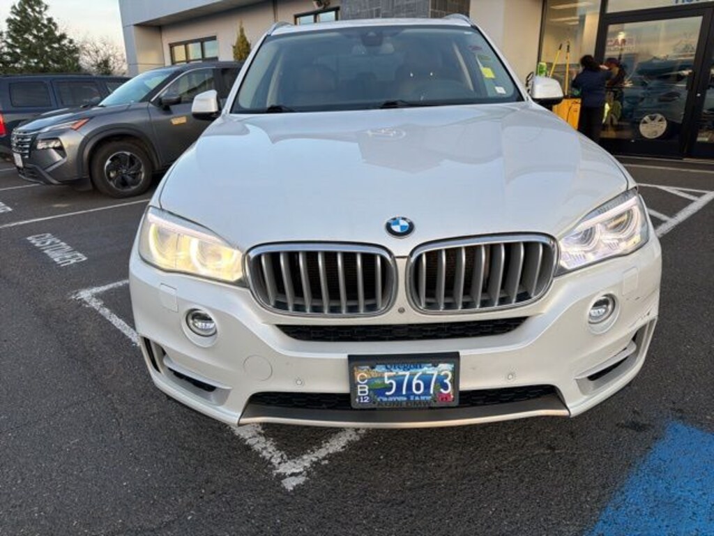 This 2015 White Metallic BMW X5 xDrive35i AWD is well equipped and includes these features and benefits: Mocha Interior Design Package (Nappa Leather Upholstery and Poplar Wood Trim), Mocha Leather, 10 Speakers, 3.154 Axle Ratio, 4-Wheel Disc Brakes, 4-Zone Automatic Climate Control, ABS brakes, ACC Stop & Go + Active Driving Assistant, Active Blind Spot Detection, Air Conditioning, Alloy wheels, Aluminum Running Boards, AM/FM radio, Anti-Theft AM/FM Stereo w/CD/MP3, Anti-whiplash front head restraints, Auto tilt-away steering wheel, Auto-dimming door mirrors, Auto-dimming Rear-View mirror, Automatic temperature control, Brake assist, Bumpers: body-color, CD player, Comfort Access Keyless Entry, Delay-off headlights, Driver door bin, Driver vanity mirror, Dual front impact airbags, Dual front side impact airbags, Electronic Stability Control, Emergency communication system: BMW Assist eCall, Four wheel independent suspension, Front anti-roll bar, Front Bucket Seats, Front Center Armrest, Front dual zone A/C, Front fog lights, Front reading lights, Front Ventilated Seats, Fully automatic headlights, Garage door transmitter, Genuine wood console insert, Genuine wood dashboard insert, Genuine wood door panel insert, harman/kardon Surround Sound System, Head restraints memory, Head-Up Display, Heated door mirrors, Heated Front Seats, Heated front seats, Heated Rear Seats, Heated Steering Wheel, Hi-Fi Sound System, High intensity discharge headlights: Bi-xenon, High-Intensity Retractable Headlight Washers, Illuminated entry, Low tire pressure warning, Lumbar Support, Memory seat, Multi-Contour Seats, Navigation System, Navigation System w/Touchpad, Occupant sensing airbag, Outside temperature display, Overhead airbag, Overhead console, Panic alarm, Passenger door bin, Passenger vanity mirror, Power adjustable front head restraints, Power door mirrors, Power driver seat, Power Front Seats w/Driver Seat Memory, Power moonroof, Power passenger seat, Power steering, Power windows, Radio data system, Rain sensing wipers, Rear anti-roll bar, Rear reading lights, Rear seat center armrest, Rear window defroster, Rear window wiper, Rear-view Camera, Remote keyless entry, Roof rack: rails only, Satellite Radio w/1 Year Subscription, Satin Aluminum Line Exterior Trim, Satin Aluminum Roof Rails, Security system, Sensatec Leatherette Upholstery, Speed control, Speed Limit Information, Speed-sensing steering, Speed-Sensitive Wipers, Split folding rear seat, Spoiler, Sport steering wheel, Steering wheel memory, Steering wheel mounted A/C controls, Steering wheel mounted audio controls, Surround View, Tachometer, Telescoping steering wheel, Tilt steering wheel, Traction control, Trip computer, Turn signal indicator mirrors, Variably intermittent wipers, Weather band radio, Wheels: 18" x 8.5" Light Alloy (Style 446), Wheels: 19" Light Alloy Orbit Gray (Style 449), and xLine (3E2) Mocha Leather.