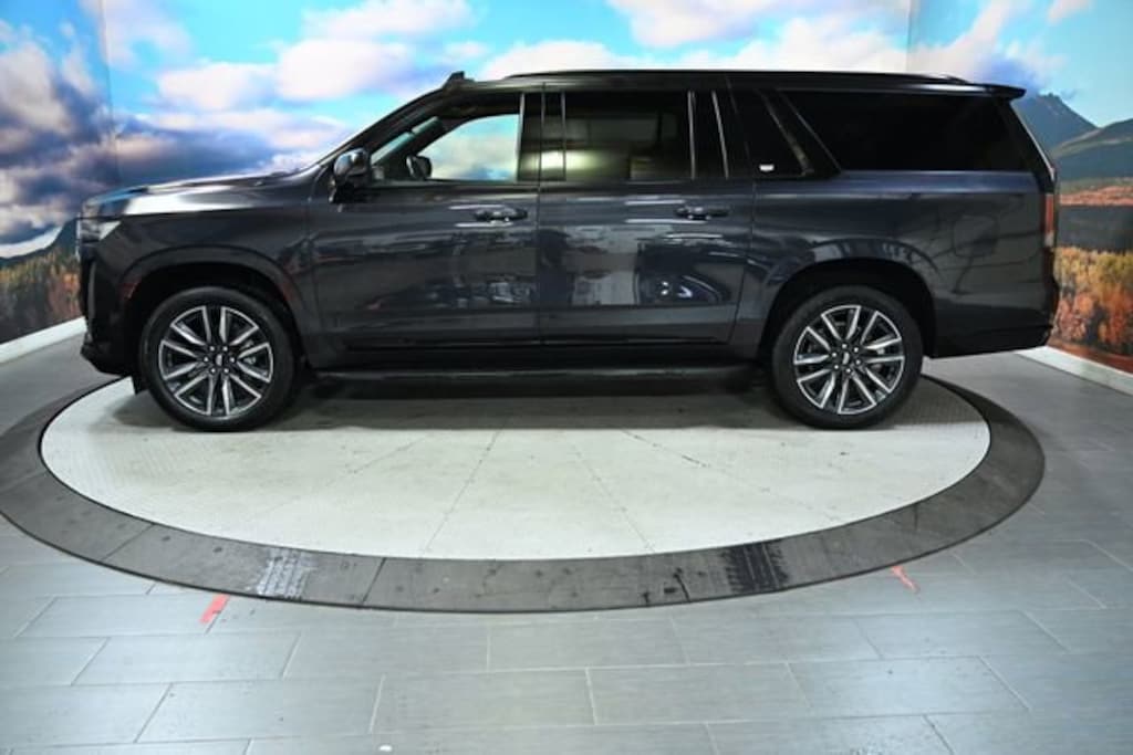 This 2023 Galactic Gray Metallic Cadillac Escalade ESV Sport AWD is well equipped and includes these features and benefits: Preferred Equipment Group 1SC (Adaptive Cruise Control, AKG Studio 19-Speaker Audio System, Automatic Seat Belt Tightening, Body-Color Door Handles, Door Lock & Latch Shields, Electronic Limited-Slip Differential, Enhanced Automatic Emergency Braking, Enhanced Automatic Parking Assist, Glass Breakage Sensor, Heated & Ventilated Driver & Front Passenger Seats, Hitch Guidance w/Hitch View, Integrated Trailer Brake Controller, Power Panoramic Tilt-Sliding Sunroof, Rear Camera Mirror, Rear Camera Mirror Washer, Rear Cross Traffic Alert, Reconfigurable Full-Color Head-Up Display, Reverse Automatic Braking, Running Board Assist Steps, Smart Trailer Integration Indicator, Theft-Deterrent Alarm System, Trailer Side Blind Zone Alert, Vehicle Inclination Sensor, and Vehicle Interior Movement Sensor), AWD, 16.9 Diagonal OLED Infotainment Screen, 19 Speakers, 2-Presets Memory For Driver Seat Adjuster, 2-Way Driver Power Lumbar Seat Adjuster, 2-Way Front Passenger Power Lumbar Seat Adjuster, 3.23 Axle Ratio, 3rd row seats: split-bench, 4-Way Power Driver Lumbar Seat Adjuster, 4-Way Power Front Passenger Lumbar Seat Adjuster, 4-Wheel Disc Brakes, 8-Way Power Driver Seat Adjuster, 8-Way Power Front Passenger Seat Adjuster, ABS brakes, Adaptive suspension, Air Conditioning, Alloy wheels, AM/FM radio: SiriusXM with 360L, Apple CarPlay/Android Auto, Audio memory, Auto High-beam Headlights, Auto tilt-away steering wheel, Auto-dimming door mirrors, Automatic temperature control, Brake assist, Bumpers: body-color, Compass, Delay-off headlights, Driver door bin, Driver vanity mirror, Dual front impact airbags, Dual front side impact airbags, Electronic Stability Control, Emergency communication system: OnStar and Cadillac connected services capable, Exterior Parking Camera Rear, Four wheel independent suspension, Front anti-roll bar, Front Bucket Seats, Front Center Armrest w/Storage, Front dual zone A/C, Front License Plate Bracket, Front reading lights, Fully automatic headlights, Garage door transmitter, HD Radio, Heads-Up Display, Heated door mirrors, Heated Driver & Front Passenger Seats, Heated front seats, Heated rear seats, Heated steering wheel, Illuminated entry, Leather Seating Surfaces w/Precision Perf Inserts, Low tire pressure warning, Magnetic Ride Control Suspension, Memory seat, Navigation System, Not Equipped w/2nd Row Express-Up Window Control, Not Equipped w/4-Way Driver & Fr Pass Pwr Lumbar, Occupant sensing airbag, Outside temperature display, Overhead airbag, Overhead console, Panic alarm, Passenger door bin, Passenger vanity mirror, Power door mirrors, Power driver seat, Power Liftgate, Power moonroof, Power passenger seat, Power steering, Power windows, Radio data system, Radio: AM/FM w/Navigation, Rain sensing wipers, Rear air conditioning, Rear anti-roll bar, Rear reading lights, Rear window defroster, Rear window wiper, Remote keyless entry, Security system, SiriusXM w/360L, Speed control, Split folding rear seat, Spoiler, Steering wheel memory, Steering wheel mounted audio controls, Super Cruise, Tachometer, Teen Driver, Telescoping steering wheel, Tilt steering wheel, Traction control, Trip computer, Turn signal indicator mirrors, Variably intermittent wipers, Ventilated fro