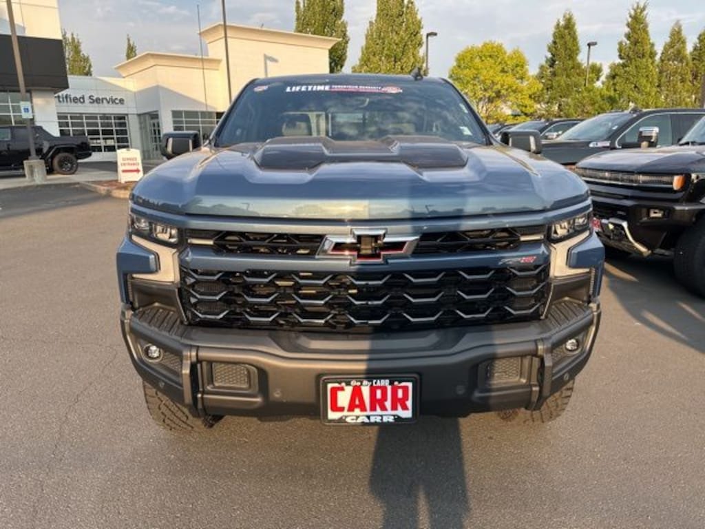 Carr Buick GMC is with you all the way. Every mile. Every day. We have been a family owned business for over 75 years and we truly care about our customers, that's why nearly every new and used vehicle comes with a LIFETIME POWERTRAIN WARRANTY plus 10 YEARS ROADSIDE ASSISTANCE at NO EXTRA COST! CARR Buick GMC dealership is centrally located in Vancouver, WA, serving Buick and GMC customers throughout Washington and Oregon. Preferred Equipment Group 3LT (10-Way Power Driver Seat w/Lumbar, 10-Way Power Passenger Seat Adjuster w/Lumbar, 12.3" Multicolor Reconfigurable Digital Display, 120-Volt Bed Mounted Power Outlet, 120-Volt Interior Power Outlet, 2 USB Data Ports, 2nd Row Heated Outboard Seats, All-Weather Floor Liner (LPO), Auto-Dimming Inside Rear-View Mirror, Bed View Camera, Bluetooth® For Phone, Chevrolet Connected Access Capable, Chevytec Spray-On Black Bedliner, Color-Keyed Carpeting Floor Covering, Deep-Tinted Glass, Driver Memory, Dual Rear USB Ports (Charge Only), Electric Rear-Window Defogger, Electrical Steering Column Lock, Electronic Cruise Control, EZ Lift Power Lock & Release Tailgate, Floor Mounted Center Console, Front LED Fog Lamps, Front Rain-Sensing Wipers, HD Surround Vision, Heated Driver & Front Outboard Passenger Seats, Heated Steering Wheel, Heavy-Duty Air Filter, High Gloss Black Mirror Caps, Hill Descent Control, Hitch Guidance w/Hitch View, In-Vehicle Trailering System App, Integrated Trailer Brake Controller, Keyless Open & Start, LED Cargo Area Lighting, Manual Tilt/Telescoping Steering Column, OnStar & Chevrolet Connected Services Capable, Outside Heated Power-Adjustable Mirrors, Performance Red Recovery Hooks, Perimeter Lighting, Power Front Passenger Windows w/Express Up/Down, Power Front Windows w/Driver Express Up/Down, Power Rear Windows w/Express Down, Power Sliding Rear Window w/Rear Defogger, Rear Cross Traffic Braking, Rear Park Assist, Rear Pedestrian Alert, Rear Wheelhouse Liners, Remote Vehicle Starter System, Safety Alert Seat, SiriusXM w/360L, Standard Tailgate, Steering Wheel Audio Controls, Theft Deterrent System (Unauthorized Entry), Trailer Camera Provisions, Trailer Side Blind Zone Alert, Universal Home Remote, Ventilated Driver & Front Passenger Seats, Wi-Fi Hot Spot Capable, and Wrapped Steering Wheel), Technology Package (15" Diagonal Multicolor Head-Up Display, Adaptive Cruise Control, Power Tilt & Telescoping Steering Column, and Rear Camera Mirror), Trailering Package (Hitch Guidance), Up-Level Rear Seat w/Storage Package, ZR2 Bison Edition (AEV Front Bumper, AEV Fuel Tank Skid Plate, AEV Rear Bumper, All-Weather AEV Floor Liners (LPO), Multi-Flex Tailgate, Rocker Protector (LPO), Ultrasonic Front & Rear Park Assist, and Wheels: 18" x 8.5" Aluminum AEV), ZR2 Suspension Package, 10-Speed Automatic, 4WD, Jet Black/Graystone Leather, 170 Amp Alternator, 220 Amp Alternator, 3.23 Rear Axle Ratio, 4-Wheel Disc Brakes, 7 Speakers, 850 Cold-Cranking Amps Heavy-Duty Battery, ABS brakes, Air Conditioning, Alloy wheels, AM/FM radio: SiriusXM with 360L, Auto High-beam Headlights, Auto-dimming door mirrors, Auto-dimming Rear-View mirror, Automatic Emergency Braking, Automatic temperature control, Auxiliary External Transmission Oil Cooler, Block heater, Brake assist, Compass, Delay-off headlights, Driver door bin, Driver vanity mirror, Dual Active Exhaust, Dual Exhaust, Dual front impact airbags, Dual front side impact airbags, Electronic Transmission Range Selector Shifter, Engine Block Heater, External Engine Oil Cooler, Following Distance Indicator, Forward Collision Alert, Front anti-roll bar, Front Bucket Seats, Front Center Armrest, Front dual zone A/C, Front fog lights, Front Pedestrian Braking, Front reading lights, Front wheel independent su