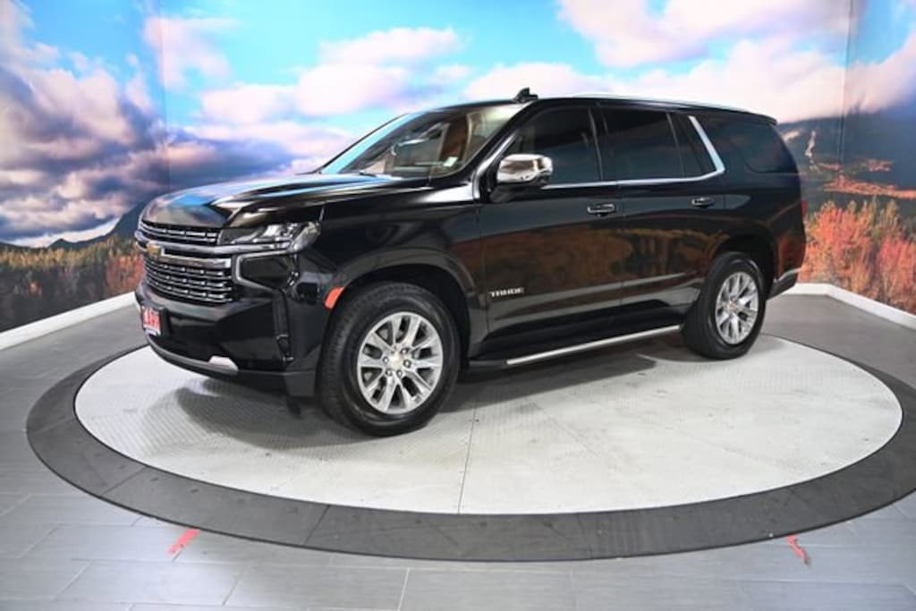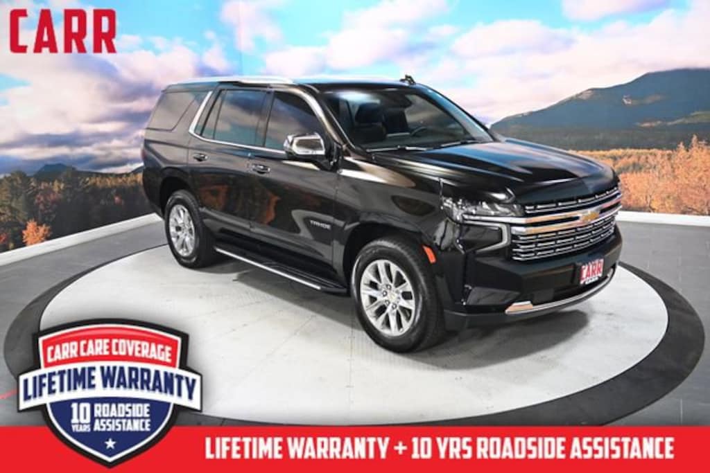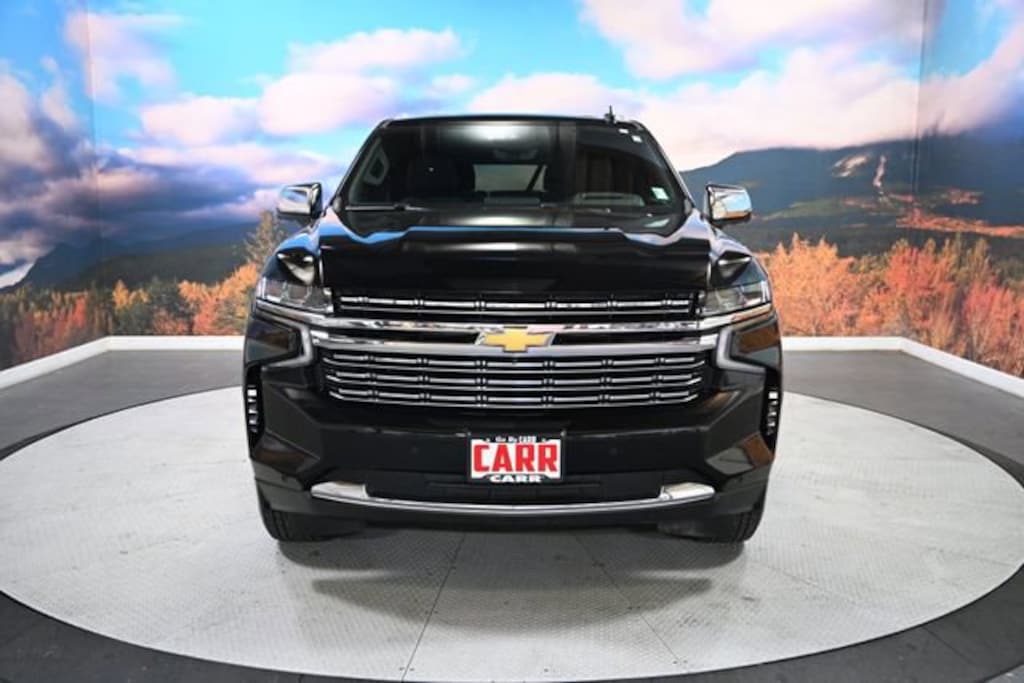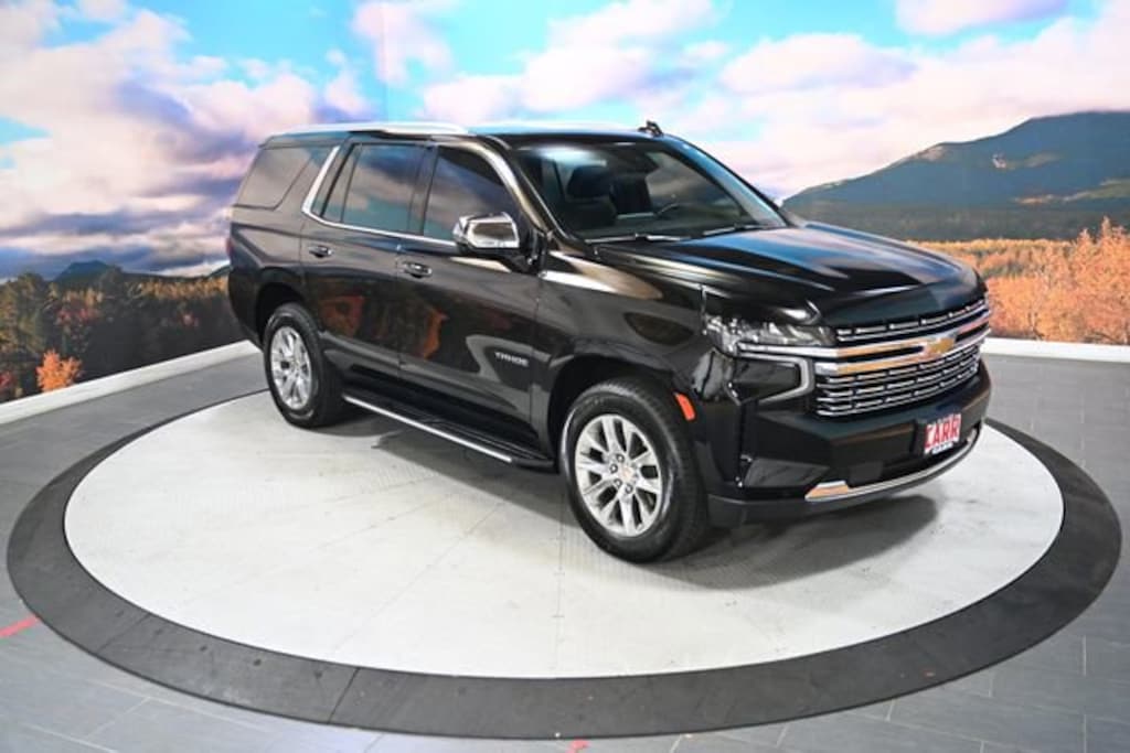 This 2024 Black Chevrolet Tahoe Premier 4WD is well equipped and includes these features and benefits: Advanced Trailering Package (Hitch View w/Pan/Zoom Image Adjustment, Integrated Trailer Brake Controller, Smart Trailer Integration Indicator, and Trailer Side Blind Zone Alert), Enhanced Display & Alert Package (15 Diagonal Multi-Color Head-Up Display, HD Surround Vision, Inside Rearview Auto-Dimming Rear Camera Mirror, Rear Camera Mirror Washer, and Rear Pedestrian Alert), License Plate Front Mounting Package, Max Trailering Package (Extra Capacity Cooling System), Preferred Equipment Group 1LZ (2-Speed Active Electronic AutoTrac Transfer Case, 3rd Row 60/40 Power-Folding Split-Bench Seat, Auto-Dimming Inside Rear-View Mirror, Bose 10-Speaker Centerpoint Surround Audio Sys Ft, Bright Front & Rear Door Sill Plates, Chrome Door Handles w/Body-Color Strip, Chrome Mirror Caps, Color-Keyed Carpeting Floor Covering, Driver & Front Outboard Passenger Airbags, Dual Exhaust System, Enhanced Driver Information Center, Floor Console, Hands-Free Rear Power Programmable Liftgate, Heated 2nd Row Outboard Seats, Heated Steering Wheel, Hill Descent Control, Lane Change Alert w/Side Blind Zone Alert, LED Daytime Running Lamps, Memory Settings, Outside Heated Power-Adjustable Mirrors, Power Release 2nd Row Bucket Seats, Power Tilt & Telescopic Steering Column, Rear Cross Traffic Alert, Remote Start, Safety Alert Seat, SiriusXM w/360L, Universal Home Remote, Wireless Charging, and Wrapped Steering Wheel), Premium Package (Dual-Pane Power Panoramic Sunroof), 4WD, Jet Black Leather, 10 Speakers, 12-Way Power Driver & Passenger Seat Adjusters, 20 x 9 Polished Aluminum Wheels, 3.23 Rear Axle Ratio, 3rd row seats: split-bench, 4-Wheel Disc Brakes, ABS brakes, Adaptive Cruise Control, Adaptive suspension, Air Conditioning, Alloy wheels, AM/FM radio: SiriusXM with 360L, Apple CarPlay/Android Auto, Auto High-beam Headlights, Auto-dimming door mirrors, Auto-dimming Rear-View mirror, Auto-leveling suspension, Automatic temperature control, Brake assist, Bumpers: body-color, Compass, Delay-off headlights, Deleted 3 Years of OnStar Remote Access, Driver & Front Passenger Heated & Ventilated Seats, Driver door bin, Driver vanity mirror, Dual front impact airbags, Dual front side impact airbags, Electronic Stability Control, Emergency communication system: OnStar and Chevrolet connected services capable, Enhanced Automatic Emergency Braking, Four wheel independent suspension, Front anti-roll bar, Front Bucket Seats, Front Center Armrest, Front dual zone A/C, Front High-Back Reclining Bucket Seats, Front reading lights, Fully automatic headlights, Garage door transmitter, Heated door mirrors, Heated Driver & Front Passenger Seats, Heated front seats, Heated rear seats, Heated steering wheel, Illuminated entry, Infotainment Display, Low tire pressure warning, Magnetic Ride Control Suspension, Memory seat, Navigation System, Occupant sensing airbag, Outside temperature display, Overhead airbag, Overhead console, Panic alarm, Passenger door bin, Passenger vanity mirror, Perforated Leather Seat Trim, Power door mirrors, Power driver seat, Power Liftgate, Power passenger seat, Power steering, Power windows, Premium audio system: Chevrolet Infotainment 3 Premium, Radio