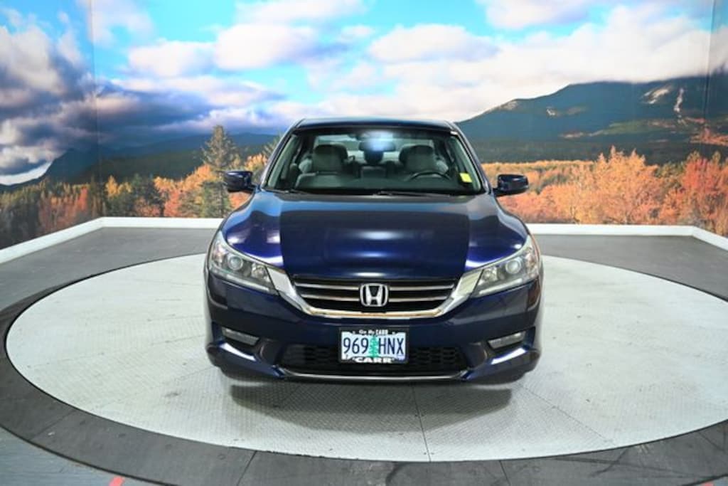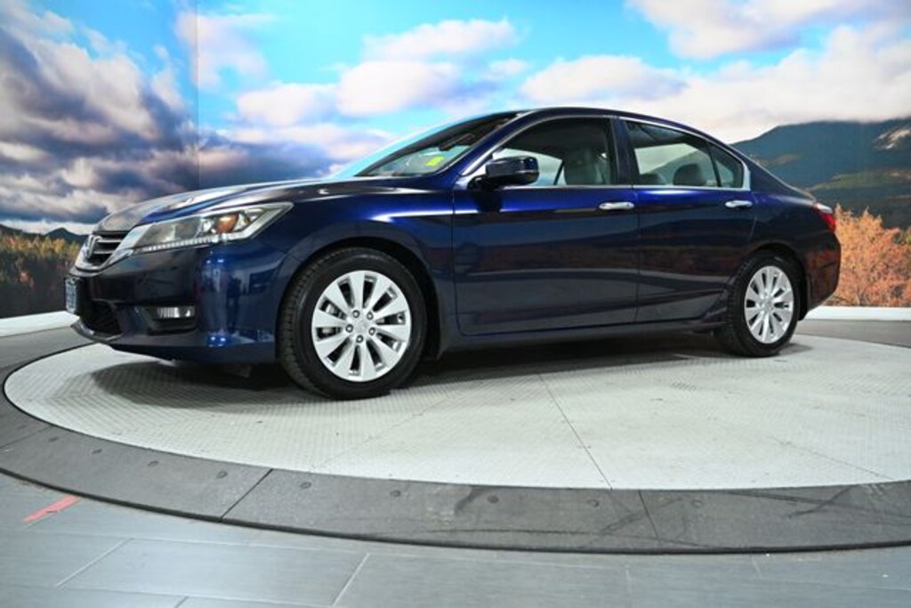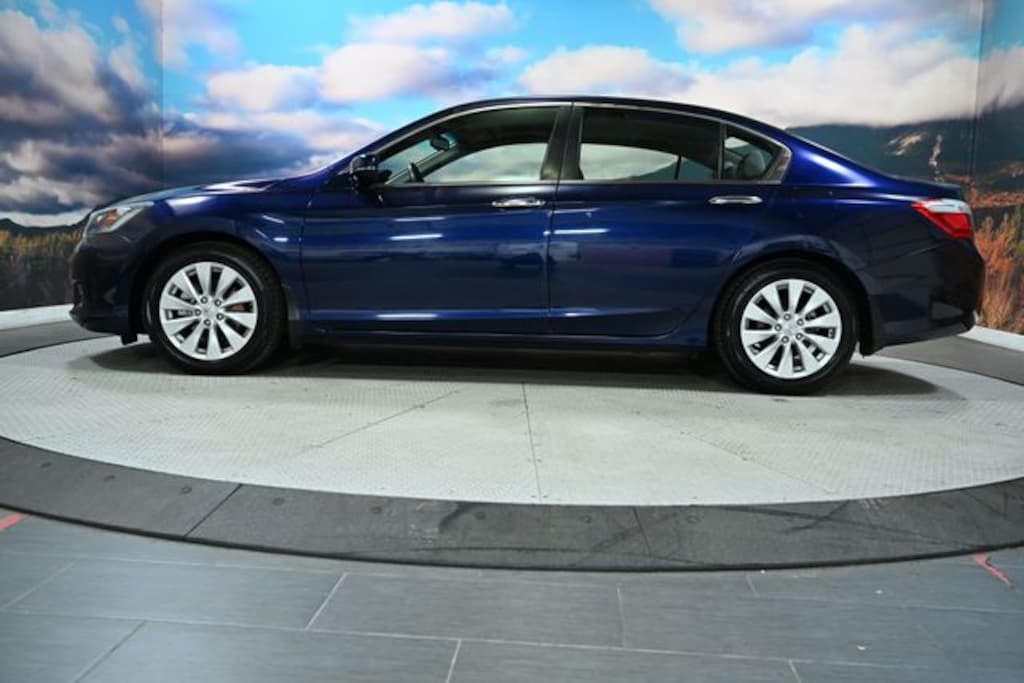 This 2015 Blue Honda Accord EX-L FWD is well equipped and includes these features and benefits: Leather, 17" Alloy Wheels, 4-Wheel Disc Brakes, 7 Speakers, ABS brakes, Air Conditioning, Alloy wheels, AM/FM radio: SiriusXM, Auto-dimming Rear-View mirror, Automatic temperature control, Brake assist, Bumpers: body-color, CD player, Compass, Delay-off headlights, Driver door bin, Driver vanity mirror, Dual front impact airbags, Dual front side impact airbags, Electronic Stability Control, Exterior Parking Camera Rear, Four wheel independent suspension, Front anti-roll bar, Front Bucket Seats, Front Center Armrest, Front dual zone A/C, Front fog lights, Front reading lights, Fully automatic headlights, Garage door transmitter: HomeLink, Heated door mirrors, Heated Front Bucket Seats, Heated front seats, Illuminated entry, Leather steering wheel, Low tire pressure warning, Memory seat, Occupant sensing airbag, Outside temperature display, Overhead airbag, Overhead console, Panic alarm, Passenger door bin, Passenger vanity mirror, Perforated Leather-Trimmed Seats, Power door mirrors, Power driver seat, Power moonroof, Power passenger seat, Power steering, Power windows, Radio data system, Radio: 360-Watt AM/FM/CD Premium Audio System, Rear anti-roll bar, Rear seat center armrest, Rear window defroster, Remote keyless entry, Security system, Speed control, Speed-sensing steering, Speed-Sensitive Wipers, Steering wheel mounted audio controls, Tachometer, Telescoping steering wheel, Tilt steering wheel, Traction control, Trip computer, Turn signal indicator mirrors, and Variably intermittent wipers. No CARR payments for 4 months, Sign and Drive sales event!, CARR Cares Advantage up to $3100 in ownership savings, Leather seats, Leather.