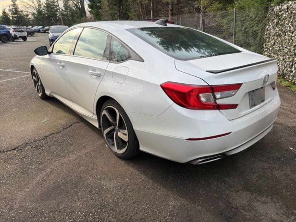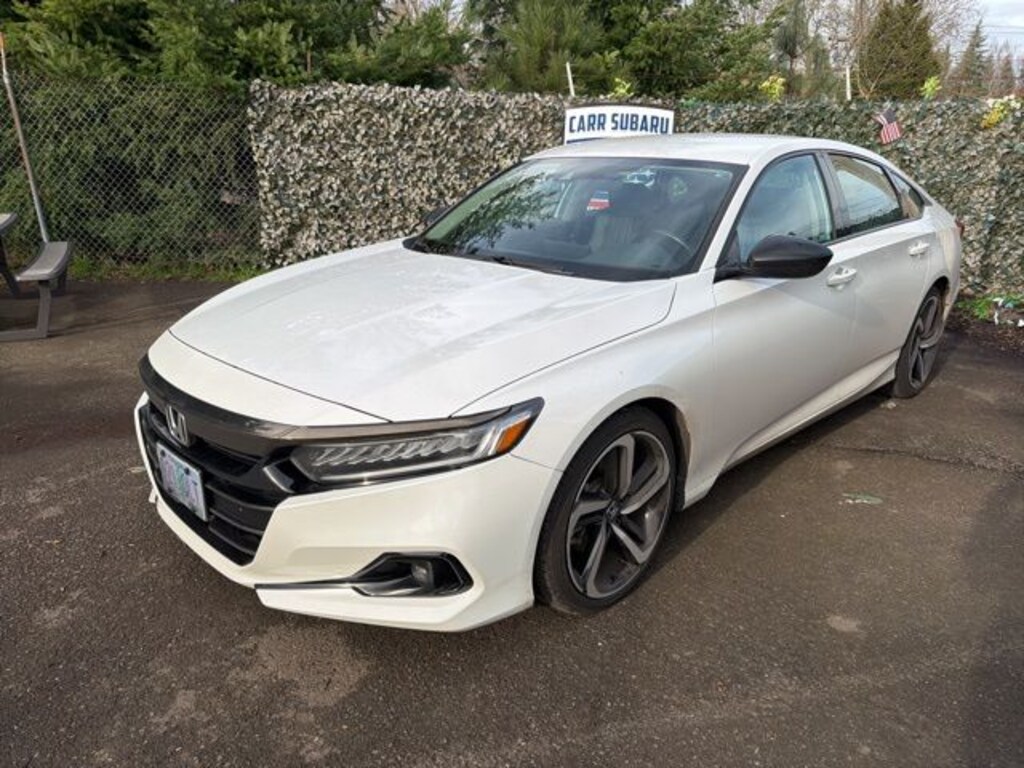 This 2022 White Honda Accord Sport Special Edition FWD is well equipped and includes these features and benefits: Black Leather, 4-Wheel Disc Brakes, 8 Speakers, ABS brakes, Adaptive Cruise Control: Adaptive Cruise Control (ACC) with Low-Speed Follow, Air Conditioning, Alloy wheels, AM/FM radio, Apple CarPlay/Android Auto, Auto High-beam Headlights, Automatic temperature control, Brake assist, Bumpers: body-color, Delay-off headlights, Driver door bin, Driver vanity mirror, Dual front impact airbags, Dual front side impact airbags, Electronic Stability Control, Emergency communication system: HondaLink, Exterior Parking Camera Rear, Forward collision: Collision Mitigation Braking System (CMBS) + FCW mitigation, Four wheel independent suspension, Front anti-roll bar, Front Bucket Seats, Front Center Armrest, Front dual zone A/C, Front fog lights, Front reading lights, Fully automatic headlights, Heated door mirrors, Heated Front Bucket Seats, Heated front seats, Illuminated entry, Knee airbag, Lane Departure Warning System, Leather Shift Knob, Leather steering wheel, Low tire pressure warning, Occupant sensing airbag, Outside temperature display, Overhead airbag, Overhead console, Panic alarm, Passenger door bin, Passenger vanity mirror, Perforated Leather Seat Trim, Power door mirrors, Power driver seat, Power passenger seat, Power steering, Power windows, Radio data system, Radio: 180-Watt AM/FM Audio System, Rear anti-roll bar, Rear seat center armrest, Rear window defroster, Remote keyless entry, Security system, Speed control, Speed-sensing steering, Speed-Sensitive Wipers, Split folding rear seat, Spoiler, Steering wheel mounted audio controls, Tachometer, Telescoping steering wheel, Tilt steering wheel, Traction control, Trip computer, Variably intermittent wipers, and Wheels: 19" Machine-Finished Alloy w/Black Inserts. Black Leather.