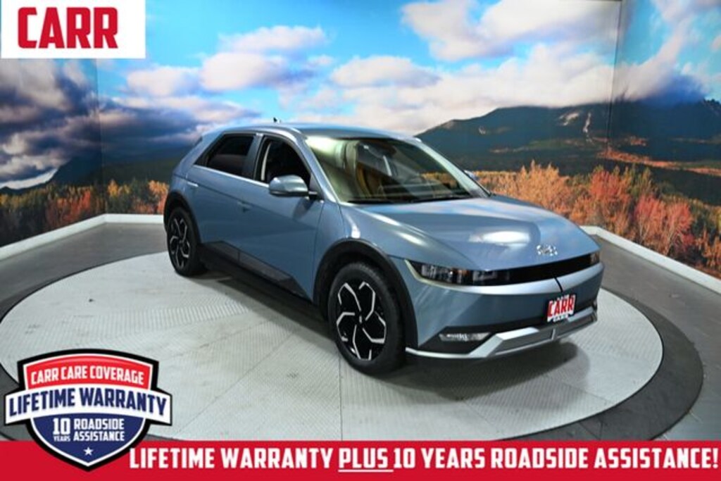 This 2024 Lucid Blue Hyundai IONIQ 5 SEL AWD is well equipped and includes these features and benefits: Option Group 01, harman/kardon® Speakers, 4-Wheel Disc Brakes, 4.71 Axle Ratio, 6 Speakers, ABS brakes, Air Conditioning, Alloy wheels, AM/FM radio: SiriusXM, Apple CarPlay & Android Auto, Auto High-beam Headlights, Auto-dimming Rear-View mirror, Automatic temperature control, Bodyside moldings, Brake assist, Bumpers: body-color, Cargo Mat, Up Seatback, Cargo Net, Carpeted Floor Mats, Delay-off headlights, Driver door bin, Driver vanity mirror, Dual front impact airbags, Dual front side impact airbags, Electronic Stability Control, Emergency communication system: Bluelink+, Four wheel independent suspension, Front anti-roll bar, Front Bucket Seats, Front Center Armrest w/Storage, Front dual zone A/C, Front reading lights, Fully automatic headlights, Garage door transmitter: HomeLink, Heated door mirrors, Heated Front Bucket Seats, Heated front seats, Heated steering wheel, Illuminated entry, Leather steering wheel, Low tire pressure warning, Navigation System, Occupant sensing airbag, Outside temperature display, Overhead airbag, Overhead console, Panic alarm, Passenger door bin, Passenger vanity mirror, Power door mirrors, Power driver seat, Power Liftgate, Power steering, Power windows, Radio: AM/FM/SiriusXM/HD Display Audio System, Rear anti-roll bar, Rear reading lights, Rear side impact airbag, Rear window defroster, Remote keyless entry, Security system, Speed control, Speed-sensing steering, Split folding rear seat, Spoiler, Stain-Resistant Cloth Seating Surfaces, Steering wheel mounted audio controls, Telescoping steering wheel, Tilt steering wheel, Traction control, Trip computer, Turn signal indicator mirrors, Variably intermittent wipers, and Wheels: 19" x 7.5J Aero Alloy. Lifetime powertrain warranty, No CARR payments for 4 months, Sign and Drive sales event!, CARR Cares Advantage up to $3100 in ownership savings, Ask us about our lifetime powertrain warranty!, harman/kardon® Speakers.