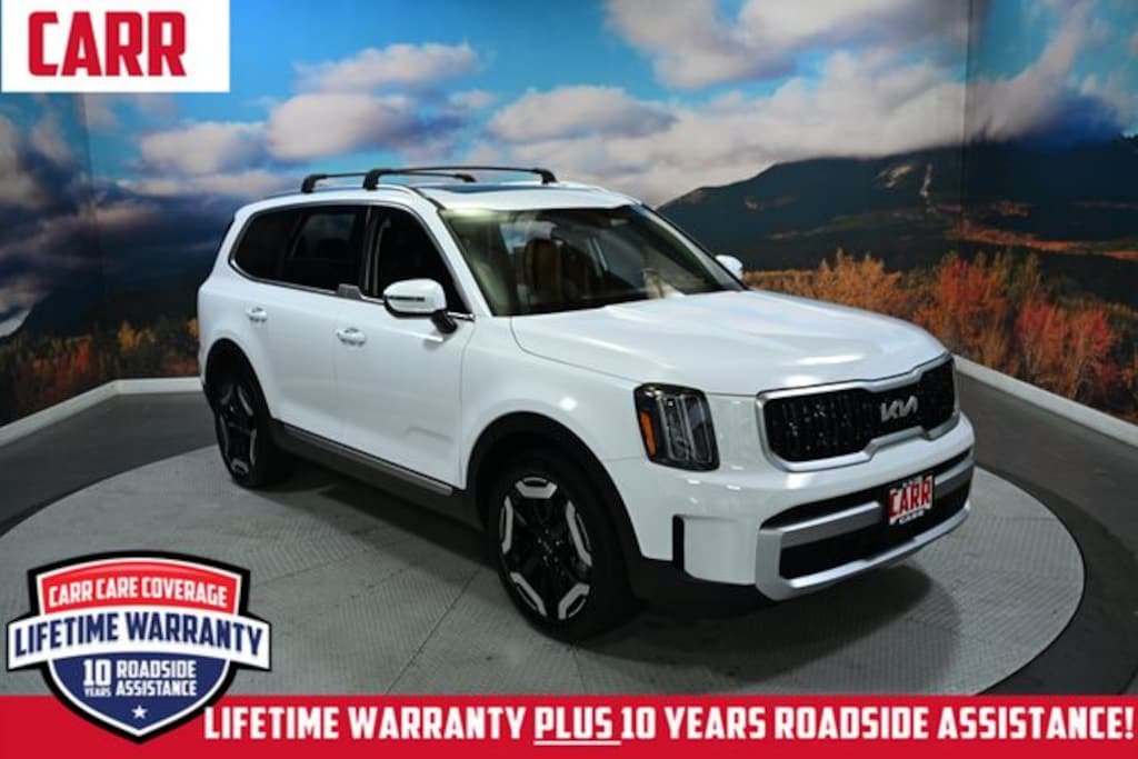 This 2025 Glacial White Pearl Kia Telluride EX AWD is well equipped and includes these features and benefits: 3rd row seats: split-bench, 4-Wheel Disc Brakes, 6 Speakers, ABS brakes, Air Conditioning, All Weather Floor Mats, Alloy wheels, AM/FM radio: SiriusXM, Apple CarPlay & Android Auto, Auto High-beam Headlights, Auto-dimming Rear-View mirror, Automatic temperature control, Brake assist, Bumpers: body-color, Compass, Delay-off headlights, Driver door bin, Driver vanity mirror, Dual front impact airbags, Dual front side impact airbags, Electronic Stability Control, Emergency communication system: 911 Connect, Exterior Parking Camera Rear, Folding Cargo Tray, Four wheel independent suspension, Front anti-roll bar, Front Bucket Seats, Front Center Armrest, Front dual zone A/C, Front reading lights, Fully automatic headlights, Heated & Ventilated Front Bucket Seats, Heated door mirrors, Heated front seats, Illuminated entry, Knee airbag, Leather Seat Trim, Leather Shift Knob, Leather steering wheel, Low tire pressure warning, Navigation System, Occupant sensing airbag, Outside temperature display, Overhead airbag, Overhead console, Panic alarm, Passenger door bin, Passenger vanity mirror, Power door mirrors, Power driver seat, Power Liftgate, Power moonroof, Power passenger seat, Power steering, Power windows, Radio data system, Radio: AM/FM Display Audio System, Rear air conditioning, Rear anti-roll bar, Rear audio controls, Rear reading lights, Rear side impact airbag, Rear window defroster, Rear window wiper, Reclining 3rd row seat, Remote keyless entry, Security system, Speed control, Speed-sensing steering, Split folding rear seat, Spoiler, Steering wheel mounted audio controls, Tachometer, Telescoping steering wheel, Tilt steering wheel, Traction control, Trip computer, Turn signal indicator mirrors, Variably intermittent wipers, and Ventilated front seats. Lifetime powertrain warranty, No CARR payments for 4 months, Sign and Drive sales event!, CARR Cares Advantage up to $3100 in ownership savings, Ask us about our lifetime powertrain warranty!.
