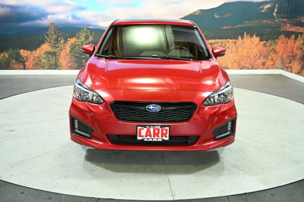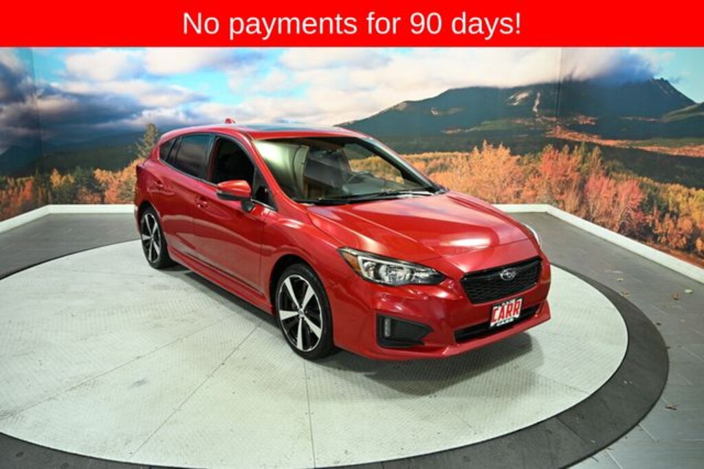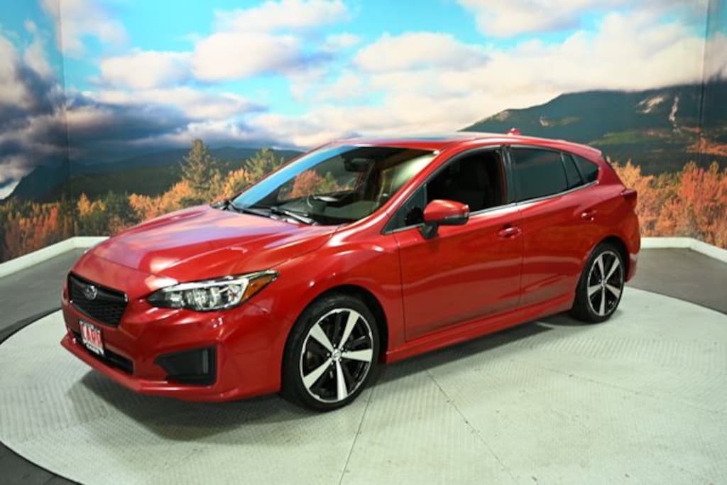 This 2017 Lithium Red Pearl Subaru Impreza 2.0i Sport AWD is well equipped and includes these features and benefits: Moonroof/Eyesight/Keyless Access w/Start (Blind Spot Detection, EyeSight System, harman/kardon Amplifier & Speakers, Power Moonroof, and Rear Cross Traffic Alert), Popular Package #4 (All-Weather Floor Mats, Auto-Dimming Mirror w/Compass & HomeLink, Cargo Tray, Exterior Auto Dimming Mirror w/Approach Light, Rear Bumper Applique, and Rear Seat Back Protector), 18" x 7.5J Aluminum Alloy Wheels, 4-Wheel Disc Brakes, 6 Speakers, ABS brakes, Air Conditioning, Alloy wheels, AM/FM radio: SiriusXM, Apple CarPlay/Android Auto, Brake assist, Bumpers: body-color, CD player, Delay-off headlights, Driver door bin, Driver vanity mirror, Dual front impact airbags, Dual front side impact airbags, Electronic Stability Control, Emergency communication system, Exterior Parking Camera Rear, Four wheel independent suspension, Front anti-roll bar, Front Bucket Seats, Front Center Armrest, Front reading lights, Fully automatic headlights, Heated door mirrors, Heated front seats, Heated Reclining Front Bucket Seats, Illuminated entry, Knee airbag, Leather Shift Knob, Low tire pressure warning, Occupant sensing airbag, Outside temperature display, Overhead airbag, Panic alarm, Passenger door bin, Passenger vanity mirror, Power door mirrors, Power steering, Power windows, Radio data system, Radio: Subaru Starlink 8.0" Multimedia Plus System, Rear anti-roll bar, Rear window defroster, Rear window wiper, Remote keyless entry, Security system, Speed control, Speed-sensing steering, Split folding rear seat, Spoiler, Sport Cloth Upholstery, Steering wheel mounted audio controls, Tachometer, Telescoping steering wheel, Tilt steering wheel, Traction control, Trip computer, Turn signal indicator mirrors, and Variably intermittent wipers.