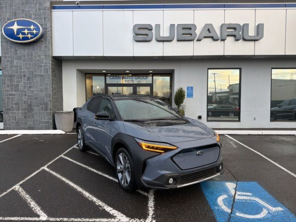This 2023 Harbor Mist Gray Pearl 2-Tone Subaru Solterra Touring AWD is well equipped and includes these features and benefits: Standard Model, Carr Care Advantage Certified, 11 Speakers, 13.8 Axle Ratio, 4-Wheel Disc Brakes, ABS brakes, Air Conditioning, All-Weather Floor Liners, Alloy wheels, AM/FM radio: SiriusXM, Auto High-beam Headlights, Auto-dimming Rear-View mirror, Automatic temperature control, Brake assist, Bumpers: body-color, Cargo Net, Cargo Tray, Driver door bin, Driver vanity mirror, Dual front impact airbags, Dual front side impact airbags, Electronic Stability Control, Emergency communication system: Subaru Solterra Connect - Safety Connect (1 year trial included), Four wheel independent suspension, Front anti-roll bar, Front Bucket Seats, Front Center Armrest, Front dual zone A/C, Front fog lights, Front reading lights, Fully automatic headlights, Garage door transmitter: HomeLink, Harbor Mist Gray Pearl Door Edge Guards, harman/kardon® Speakers, Heated & Ventilated Front Bucket Seats, Heated door mirrors, Heated front seats, Heated rear seats, Heated steering wheel, Illuminated entry, Knee airbag, Leather steering wheel, Low tire pressure warning, Memory seat, Navigation system: Cloud Navigation System (Subscription required), Occupant sensing airbag, Outside temperature display, Overhead airbag, Overhead console, Panic alarm, Passenger door bin, Passenger vanity mirror, Power door mirrors, Power driver seat, Power Liftgate, Power steering, Power windows, Radio data system, Radio: Subaru Solterra Connect 12.3" Multimedia System, Rain sensing wipers, Rear anti-roll bar, Rear reading lights, Rear seat center armrest, Rear window defroster, Remote keyless entry, Security system, Speed control, Speed-sensing steering, Split folding rear seat, Spoiler, StarTex Upholstery, Steering wheel mounted audio controls, Telescoping steering wheel, Tilt steering wheel, Traction control, Trip computer, Turn signal indicator mirrors, Variably intermittent wipers, Ventilated front seats, and Wheels: 20" x 7.5" J Aluminum-Alloy Gray Finish.