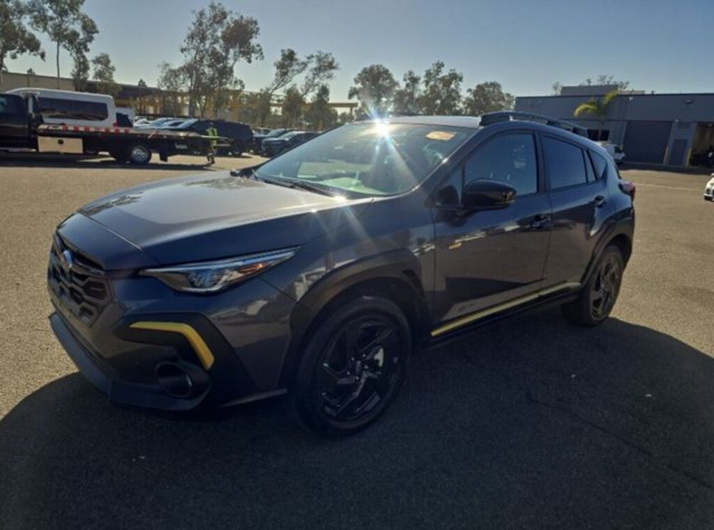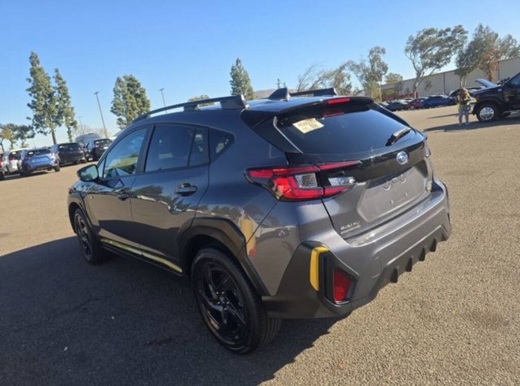 This 2024 Gray Metallic Subaru Crosstrek Sport AWD is well equipped and includes these features and benefits: BSD/RCTA & Power Driver Seat & Power Moonroof (10-Way Power Driver's Seat, Blind Spot Detection w/Rear Cross-Traffic Alert, and Power Moonroof), 3.70 Axle Ratio, 4-Wheel Disc Brakes, 6 Speakers, ABS brakes, Air Conditioning, Alloy wheels, AM/FM radio: SiriusXM, Anti-whiplash front head restraints, Auto High-beam Headlights, Automatic temperature control, Brake assist, Bumpers: body-color, Driver door bin, Driver vanity mirror, Dual front impact airbags, Dual front side impact airbags, Electronic Stability Control, Emergency communication system: STARLINK Safety and Security (Subscription Required), Exterior Parking Camera Rear, Four wheel independent suspension, Front anti-roll bar, Front Bucket Seats, Front Center Armrest, Front dual zone A/C, Front fog lights, Front reading lights, Fully automatic headlights, Heated door mirrors, Heated Front Bucket Seats, Heated front seats, Illuminated entry, Knee airbag, Leather Shift Knob, Low tire pressure warning, Occupant sensing airbag, Outside temperature display, Overhead airbag, Overhead console, Panic alarm, Passenger door bin, Passenger vanity mirror, Power door mirrors, Power steering, Power windows, Radio data system, Radio: Subaru STARLINK 11.6" Multimedia Plus Sys, Rear anti-roll bar, Rear seat center armrest, Rear window defroster, Rear window wiper, Remote keyless entry, Security system, Speed control, Speed-sensing steering, Split folding rear seat, Spoiler, Sport Cloth Upholstery, STARLINK/Apple CarPlay/Android Auto, Steering wheel mounted audio controls, Tachometer, Telescoping steering wheel, Tilt steering wheel, Traction control, Trip computer, Turn signal indicator mirrors, Variably intermittent wipers, and Wheels: 18" x 7.0J Dark Gray Aluminum Alloy.