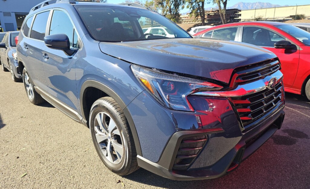 This 2025 Cosmic Blue Subaru Ascent Premium AWD is well equipped and includes these features and benefits: Standard Model, 3rd row seats: bench, 4-Wheel Disc Brakes, 6 Speakers, ABS brakes, Air Conditioning, Alloy wheels, AM/FM radio: SiriusXM with 360L, Apple CarPlay & Android Auto, Auto High-beam Headlights, Auto-dimming Rear-View mirror, Automatic temperature control, Brake assist, Bumpers: body-color, Compass, Delay-off headlights, Driver door bin, Driver vanity mirror, Dual front impact airbags, Dual front side impact airbags, Electronic Stability Control, Emergency communication system: MySubaru Safety (3-year free trial), Exterior Parking Camera Rear, Four wheel independent suspension, Front anti-roll bar, Front Bucket Seats, Front Center Armrest, Front dual zone A/C, Front reading lights, Fully automatic headlights, Garage door transmitter: HomeLink, Heated door mirrors, Heated Front Bucket Seats, Heated front seats, Illuminated entry, Knee airbag, Leather Shift Knob, Leather steering wheel, Low tire pressure warning, Occupant sensing airbag, Outside temperature display, Overhead airbag, Overhead console, Panic alarm, Passenger door bin, Passenger vanity mirror, Power door mirrors, Power driver seat, Power Liftgate, Power steering, Power windows, Radio data system, Radio: Subaru 11.6" Multimedia Plus System, Rear air conditioning, Rear anti-roll bar, Rear reading lights, Rear window defroster, Rear window wiper, Reclining 3rd row seat, Remote keyless entry, Security system, Speed control, Speed-sensing steering, Spill Resistant Coated Cloth Upholstery, Split folding rear seat, Spoiler, Steering wheel mounted audio controls, Tachometer, Telescoping steering wheel, Tilt steering wheel, Traction control, Trip computer, Turn signal indicator mirrors, Variably intermittent wipers, and Wheels: 18" x 7.5 J Gray Alloy w/Machine Finish.