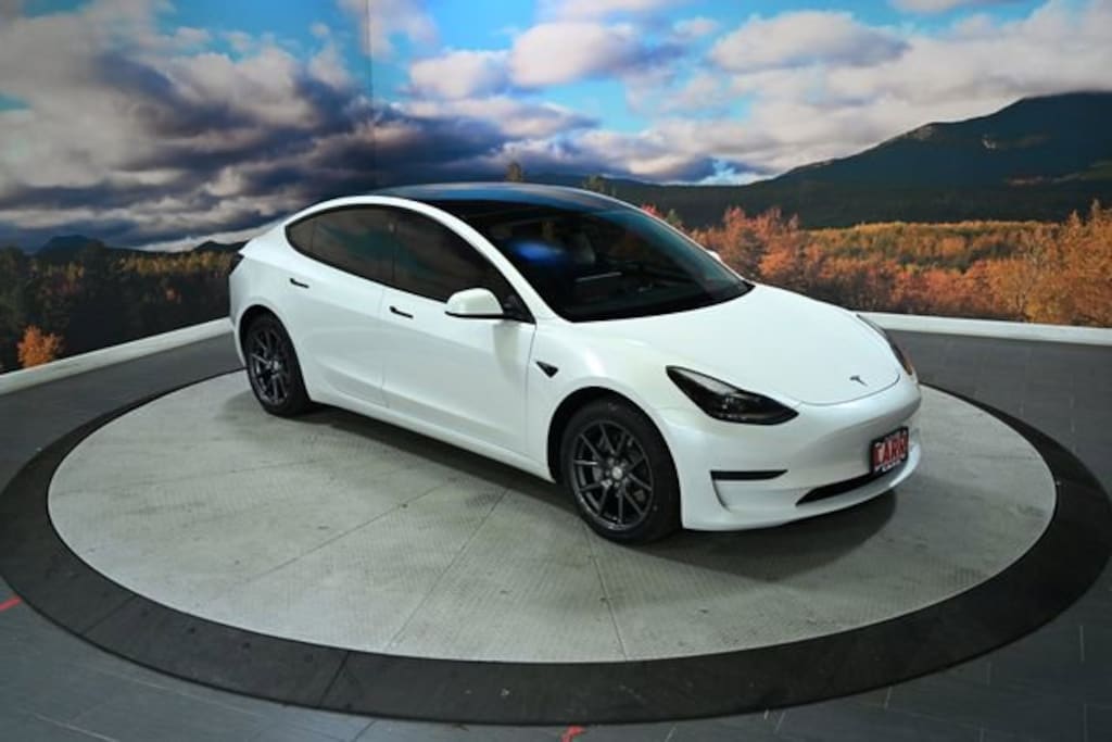 This 2023 Pearl White Multi-Coat Tesla Model 3 Base RWD is well equipped and includes these features and benefits: 4-Wheel Disc Brakes, 8 Speakers, ABS brakes, Air Conditioning, Alloy wheels, Audio memory, Auto High-beam Headlights, Auto-dimming door mirrors, Auto-dimming Rear-View mirror, Automatic temperature control, Brake assist, Bumpers: body-color, Compass, Delay-off headlights, Driver door bin, Driver vanity mirror, Dual front impact airbags, Dual front side impact airbags, Electronic Stability Control, Emergency communication system, Exterior Parking Camera Rear, Four wheel independent suspension, Front anti-roll bar, Front Bucket Seats, Front Center Armrest, Front dual zone A/C, Front reading lights, Fully automatic headlights, Genuine wood dashboard insert, Heated door mirrors, Heated Front Bucket Seats, Heated front seats, Heated rear seats, Heated steering wheel, HVAC memory, Illuminated entry, Knee airbag, Lane Departure Warning System, Low tire pressure warning, Memory seat, Navigation System, Occupant sensing airbag, Outside temperature display, Overhead airbag, Passenger door bin, Passenger vanity mirror, Power door mirrors, Power driver seat, Power passenger seat, Power steering, Power windows, Premium Seat Trim, Radio data system, Radio: Upgraded Audio System, Rain sensing wipers, Rear reading lights, Rear seat center armrest, Rear window defroster, Security system, Speed control, Speed-sensing steering, Split folding rear seat, Steering wheel memory, Steering wheel mounted A/C controls, Steering wheel mounted audio controls, Telescoping steering wheel, Tilt steering wheel, Traction control, Trip computer, Variably intermittent wipers, and Wheels: 18 x 8.5 Aero.