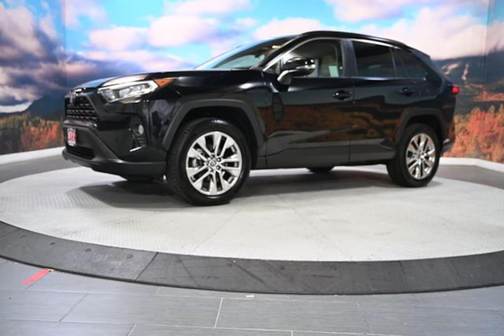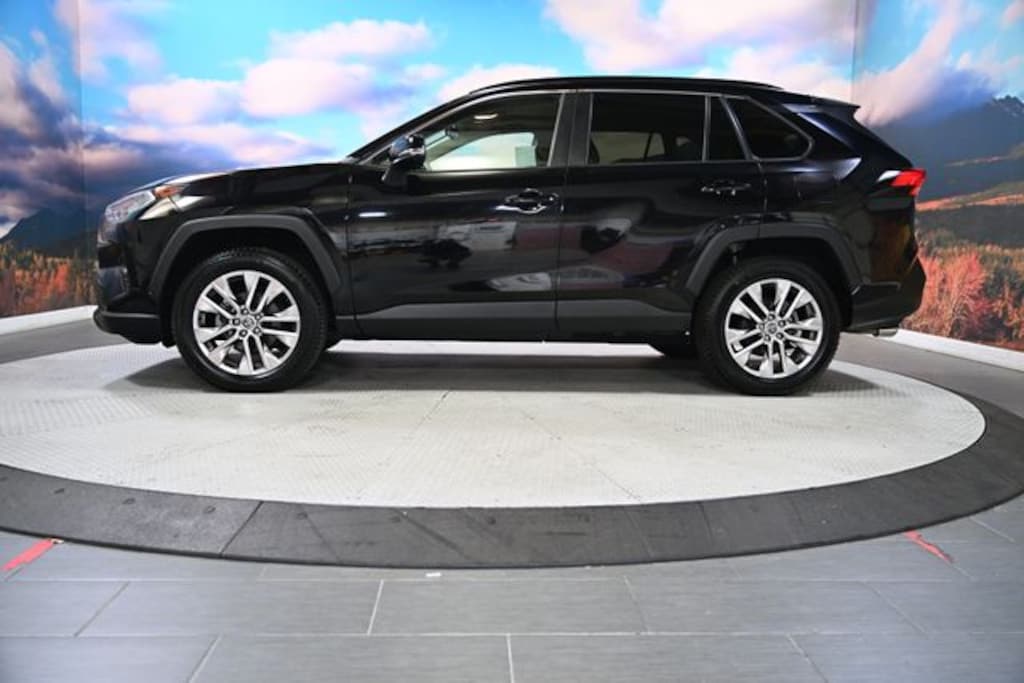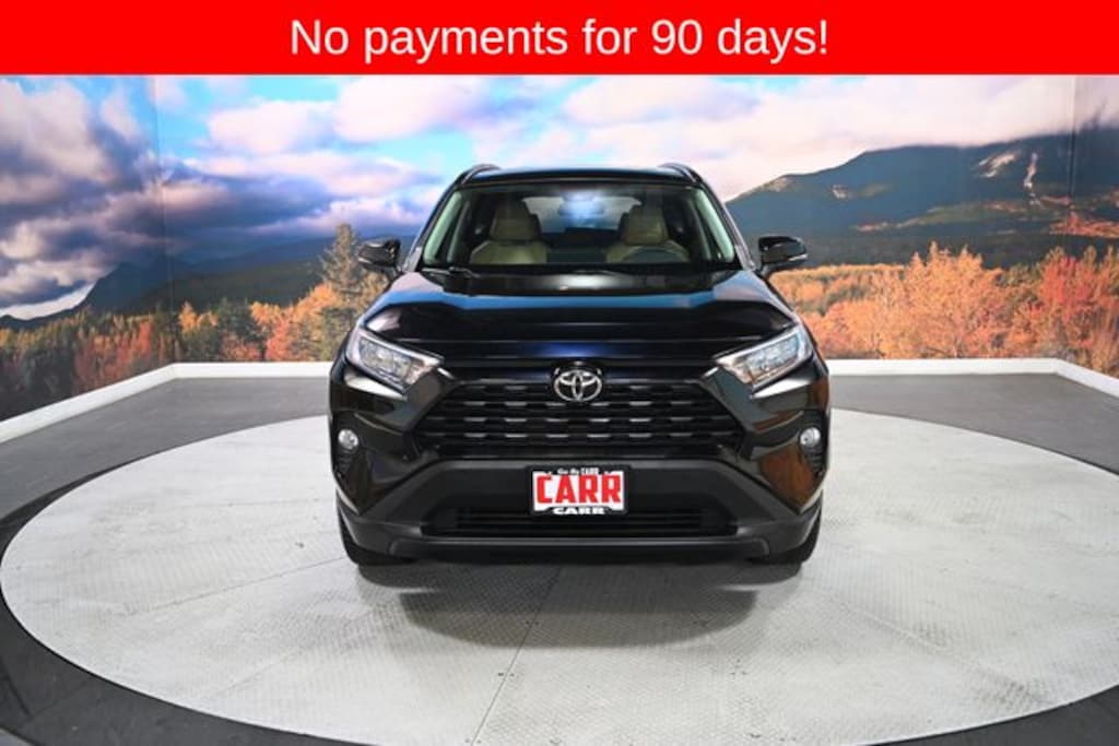 This 2021 Midnight Black Metallic Toyota RAV4 XLE Premium AWD is well equipped and includes these features and benefits: XLE Premium Package (Front Door Smart Key System w/Push Button Start and Tilt & Slide Moon Roof), AWD, Mocha Leather, Power Liftgate, Power moonroof, 3 Spoke Leather Heated Steering Wheel, 3 Spoke Leather Steering Wheel, 4-Wheel Disc Brakes, 6 Speakers, ABS brakes, Air Conditioning, Alloy wheels, AM/FM radio: SiriusXM, AM/FM Stereo, Apple CarPlay/Android Auto, Auto High-beam Headlights, Automatic temperature control, Axle Ratio: 3.177, Blind Spot Monitor, Brake assist, Bumpers: body-color, Delay-off headlights, Driver door bin, Driver vanity mirror, Dual front impact airbags, Dual front side impact airbags, Electronic Stability Control, Emergency communication system, Exterior Parking Camera Rear, Four wheel independent suspension, Front anti-roll bar, Front Bucket Seats, Front Center Armrest, Front dual zone A/C, Front fog lights, Front reading lights, Fully automatic headlights, Heated door mirrors, Illuminated entry, Knee airbag, Leather Shift Knob, Low tire pressure warning, Occupant sensing airbag, Outside temperature display, Overhead airbag, Overhead console, Panic alarm, Passenger door bin, Passenger vanity mirror, Power door mirrors, Power driver seat, Power steering, Power windows, Radio data system, Rear anti-roll bar, Rear seat center armrest, Rear window defroster, Rear window wiper, Remote keyless entry, Roof rack: rails only, SofTex Seat Trim, Speed control, Speed-sensing steering, Split folding rear seat, Spoiler, Steering wheel mounted audio controls, Tachometer, Telescoping steering wheel, Tilt steering wheel, Traction control, Trip computer, Turn signal indicator mirrors, Variably intermittent wipers, and Wheels: 19" Multi-Spoke Super Chrome Alloy. No CARR payments for 4 months, Sign and Drive sales event!, XLE Premium Package, One owner, AWD, Mocha Leather, Front Door Smart Key System w/Push Button Start, Power Liftgate, Power moonroof, Tilt & Slide Moon Roof, XLE Premium Package.