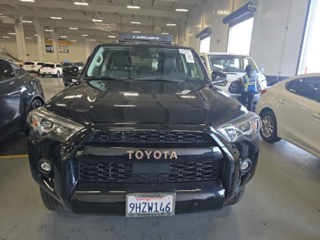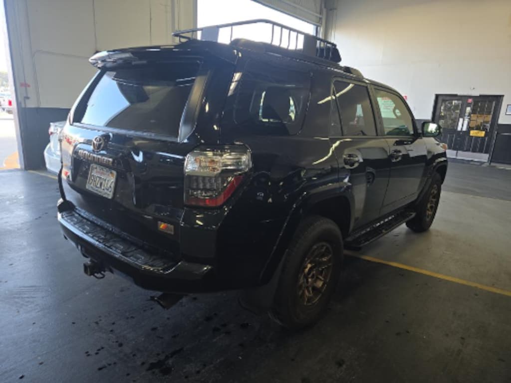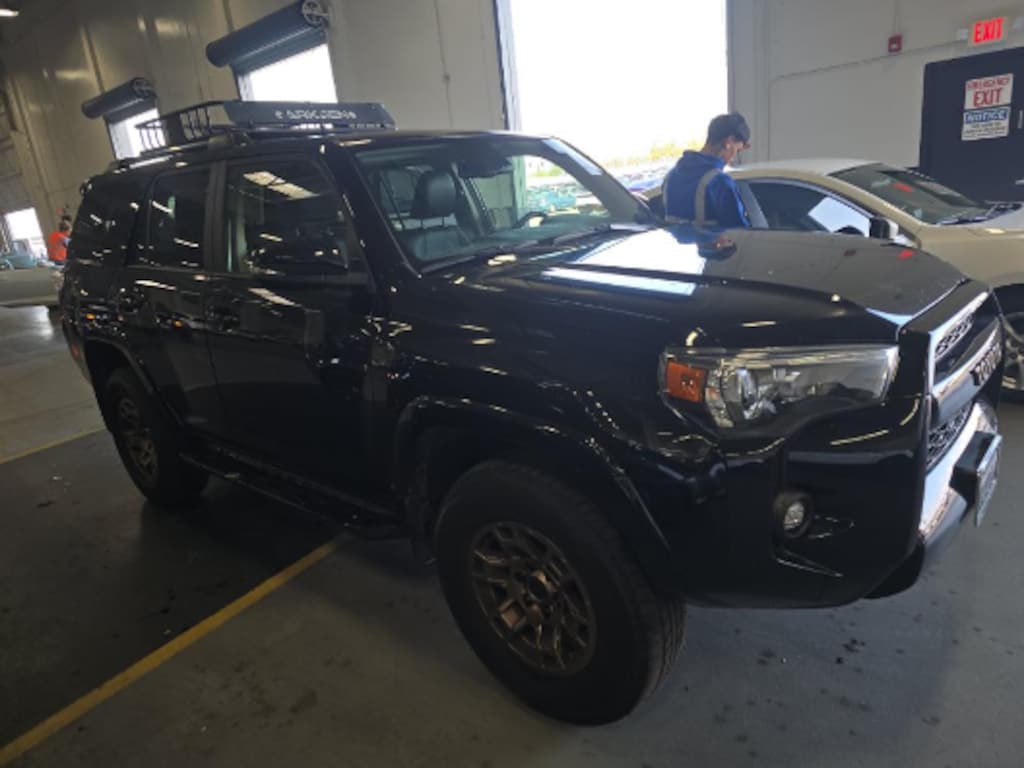 This 2023 Black Toyota 4Runner 40th Anniversary Special Edition 4WD is well equipped and includes these features and benefits: 4WD, Black Leather, 3.727 Axle Ratio, 4-Wheel Disc Brakes, 8 Speakers, ABS brakes, Air Conditioning, Alloy wheels, AM/FM radio: SiriusXM, Anti-whiplash front head restraints, Apple CarPlay/Android Auto, Auto High-beam Headlights, Auto-dimming Rear-View mirror, Black Roof Rails, Brake assist, Bumpers: body-color, Compass, Driver door bin, Driver vanity mirror, Dual front impact airbags, Dual front side impact airbags, Electronic Stability Control, Emergency communication system: Safety Connect (1-year trial), Exterior Parking Camera Rear, Front anti-roll bar, Front Bucket Seats, Front Center Armrest, Front fog lights, Front reading lights, Front wheel independent suspension, Garage Door Opener, Garage door transmitter: HomeLink, Heated door mirrors, Heated Front Bucket Seats, Heated front seats, Heated Outside Rear-View Mirrors, Illuminated entry, Knee airbag, Leather Shift Knob, Leather steering wheel, Low tire pressure warning, Moonroof w/Tilt Up & Slide, Navigation System, Occupant sensing airbag, Outside temperature display, Overhead airbag, Overhead console, Panic alarm, Passenger door bin, Passenger vanity mirror, Power door mirrors, Power driver seat, Power moonroof, Power passenger seat, Power steering, Power windows, Radio: Premium Audio w/Dynamic Navigation, Rear anti-roll bar, Rear seat center armrest, Rear window defroster, Rear window wiper, Remote keyless entry, Security system, SofTex Seat Trim, Speed control, Speed-sensing steering, Split folding rear seat, Spoiler, Steering wheel mounted audio controls, Tachometer, Telescoping steering wheel, Tilt steering wheel, Traction control, Trip computer, Turn signal indicator mirrors, Variably intermittent wipers, and Wheels: 17" Bronze-Colored Alloy. 4WD, Black Leather.
