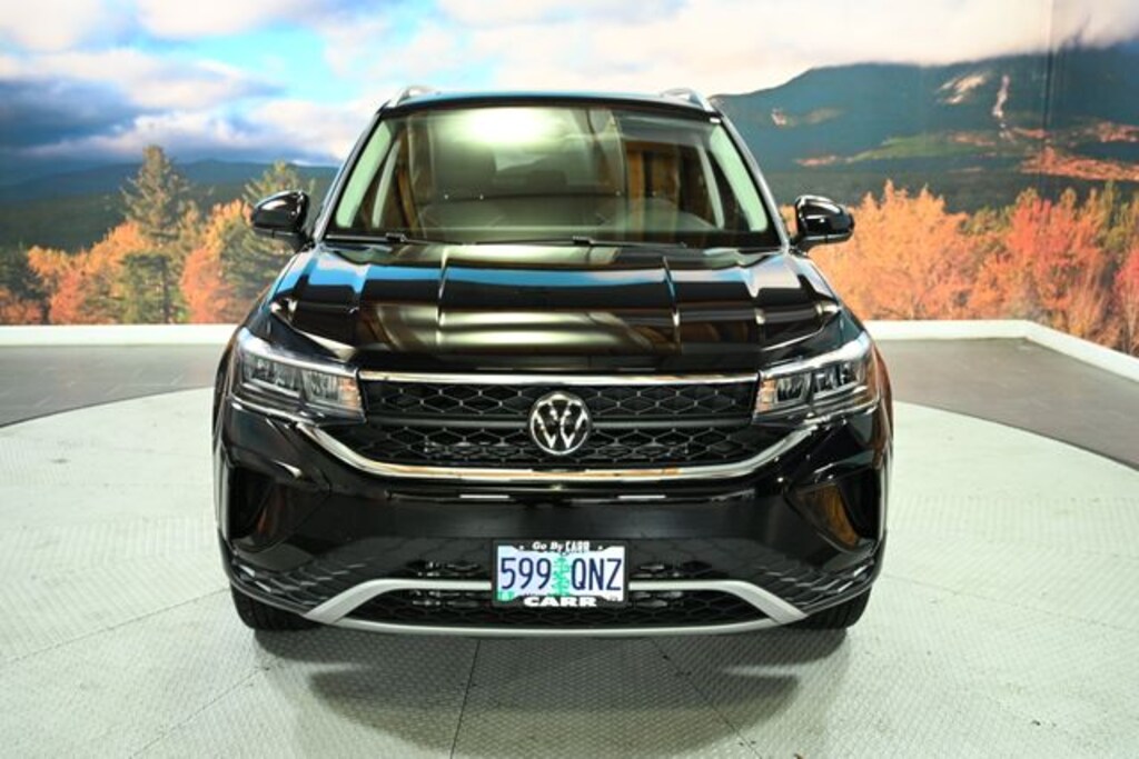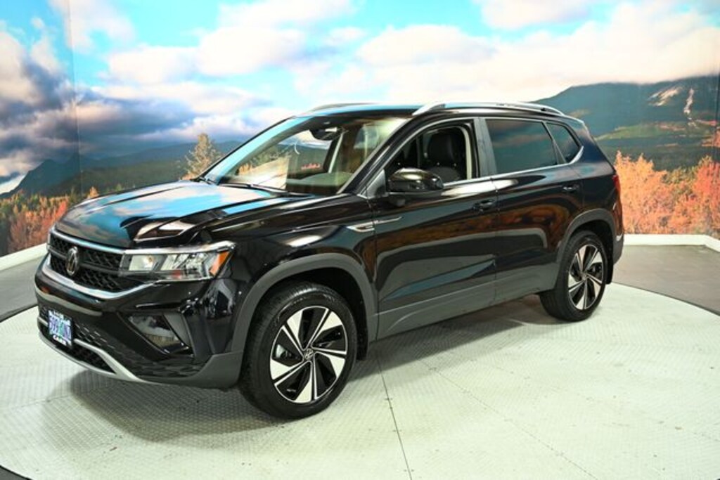 This 2024 Black Volkswagen Taos 1.5T SE AWD is well equipped and includes these features and benefits: 4-Wheel Disc Brakes, 5.20 Axle Ratio, 6 Speakers, ABS brakes, Active Blind Spot Monitor, Air Conditioning, Alloy wheels, AM/FM radio: SiriusXM with 360L, Auto High-beam Headlights, Automatic temperature control, Brake assist, Bumpers: body-color, CloudTex & Cloth Seating Surfaces, Compass, Delay-off headlights, Driver door bin, Driver vanity mirror, Dual front impact airbags, Dual front side impact airbags, Electronic Stability Control, Emergency communication system: VW Car-Net Safe & Secure 5-year, Exterior Parking Camera Rear, Four wheel independent suspension, Front anti-roll bar, Front Bucket Seats, Front Center Armrest, Front dual zone A/C, Front reading lights, Front Strut Rear Multi-Link Suspension, Fully automatic headlights, Heated door mirrors, Heated Front Bucket Seats, Heated front seats, Heated steering wheel, Illuminated entry, Leather Shift Knob, Low tire pressure warning, Occupant sensing airbag, Outside temperature display, Overhead airbag, Overhead console, Panic alarm, Passenger door bin, Passenger vanity mirror, Power door mirrors, Power driver seat, Power steering, Power windows, Radio data system, Radio: MIB3 Composition Media AM/FM/HD, Rain sensing wipers, Rear anti-roll bar, Rear seat center armrest, Rear window defroster, Rear window wiper, Remote keyless entry, Security system, Speed control, Speed-sensing steering, Split folding rear seat, Spoiler, Steering wheel mounted audio controls, Tachometer, Telescoping steering wheel, Tilt steering wheel, Traction control, Trip computer, Variably intermittent wipers, and Wheels: 18" 2-Tone Machined Alloy.
